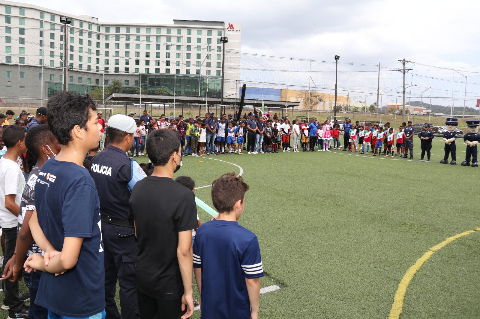 La Cancha Deportiva de la Policía Nacional fue el escenario para recibir por parte de la Embajada de los Estados Unidos la donación de Kits Deportivos y Carpas. Correspondió al Jefe De Los Programas Preventivo y Sociales, Subcomisionado Ricardo Fruto y a su personal, recibir de manos del Teniente Coronel Jefri Reed y su equipo de trabajo esta significativa donación, que consiste en Kits Deportivos y Carpas deportivas en el marco de la celebración del cierre de verano, actividad deportiva y recreativa, dirigida a un aproximado de 300 niños y niñas, quienes participan en los programas de Prevención Social y Comunitarios que desarrolla nuestra institución en más de 48 comunidades donde existen niños en riesgo social. El Subcomisionado Ricardo Fruto, de la Policía Nacional agradeció esta donación que busca fortalecer los diferentes programas de prevención como Uniendo Fuerza Contra La Delincuencia. Por su parte Alejandro Wallis, de la Embaja de los Estados Unidos indicó que esta cooperación busca fortalecer el trabajo de la línea 104 que viene impreso en estos implementos. Nuestra institución continúa trabajando de manera permanente llevando prevención social y crecimiento comunitario en diversos puntos de nuestro país. |