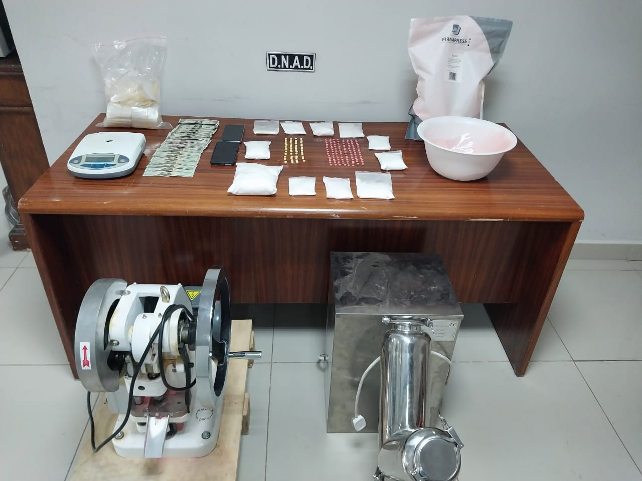 La Policía Nacional a través de la Dirección Nacional Antidrogas en conjunto con funcionarios del Ministerio Público mediante diligencia de allanamiento aprehenden a dos personas quienes mantenían en su poder 112 pastillas rosadas y amarillas de presunta droga sintética, además de elementos químicos y máquinas para la fabricación de las mismas en la provincia de Herrera.