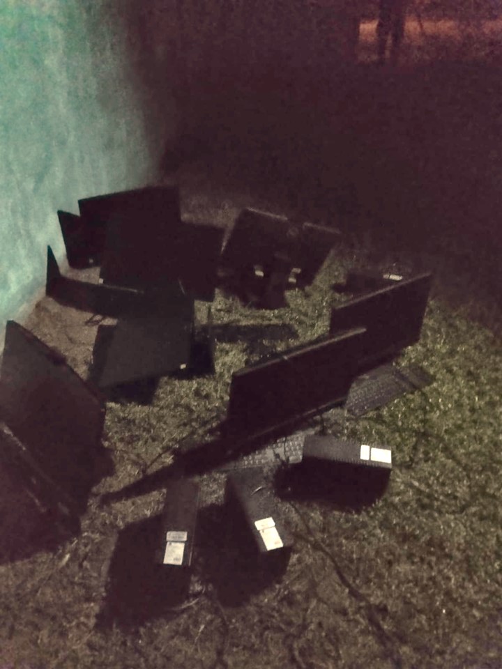 POLICÍA NACIONAL RECUPERA COMPUTADORAS Y TECLADOS, EN LA PARTE EXTERIOR DE INFOPLAZA UBICADA EN BOCAS DEL TORO