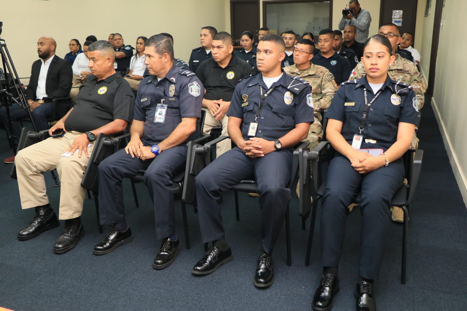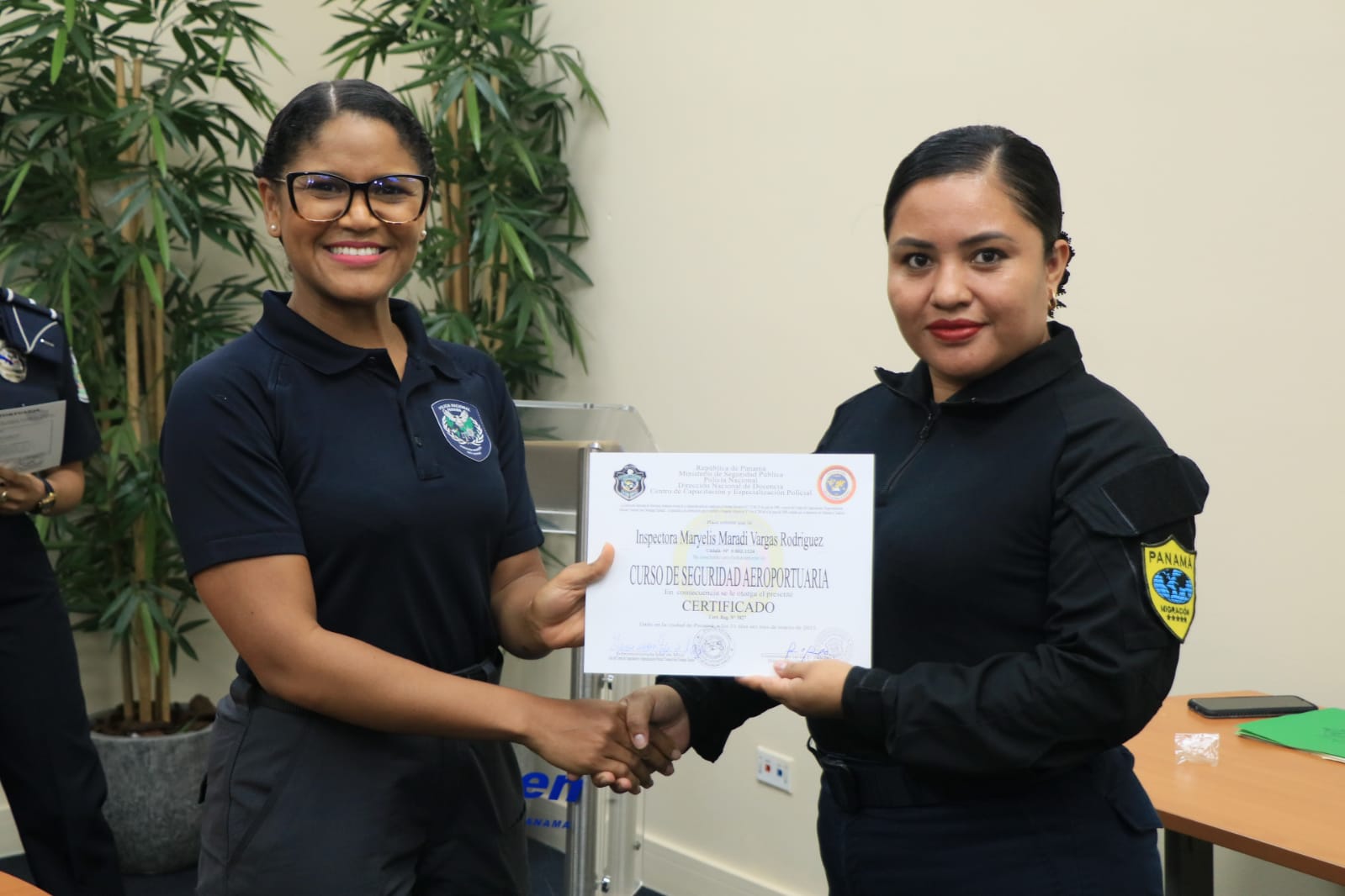 21 unidades de la Policía Nacional, Servicio Nacional de Migración, Autoridad Nacional de Aduanas y el Senan, recibieron sus diplomas tras culminar el Tercer Curso Interinstitucional de Seguridad Aeroportuaria. El jefe de Seguridad Aeroportuaria de la Policía Nacional, Subcomisionado José Castro indicó que la capacitación fortalece las capacidades en la labor que se gestiona de manera articulada para garantizar la seguridad en el Aeropuerto Internacional de Tocumen. Del 20 al 31 de marzo, las unidades fueron actualizados sobre las nuevas tácticas y estrategias de planificación y seguridad, en los que se abordaron conocimientos básicos en inglés, intervención en crisis, trato al público, perfiles, detección de delitos ambientales, procedimientos aduaneros y policiales, entre otros. Asimismo, a los instructores se les entregó certificados en reconocimiento a los conocimientos compartidos. |
