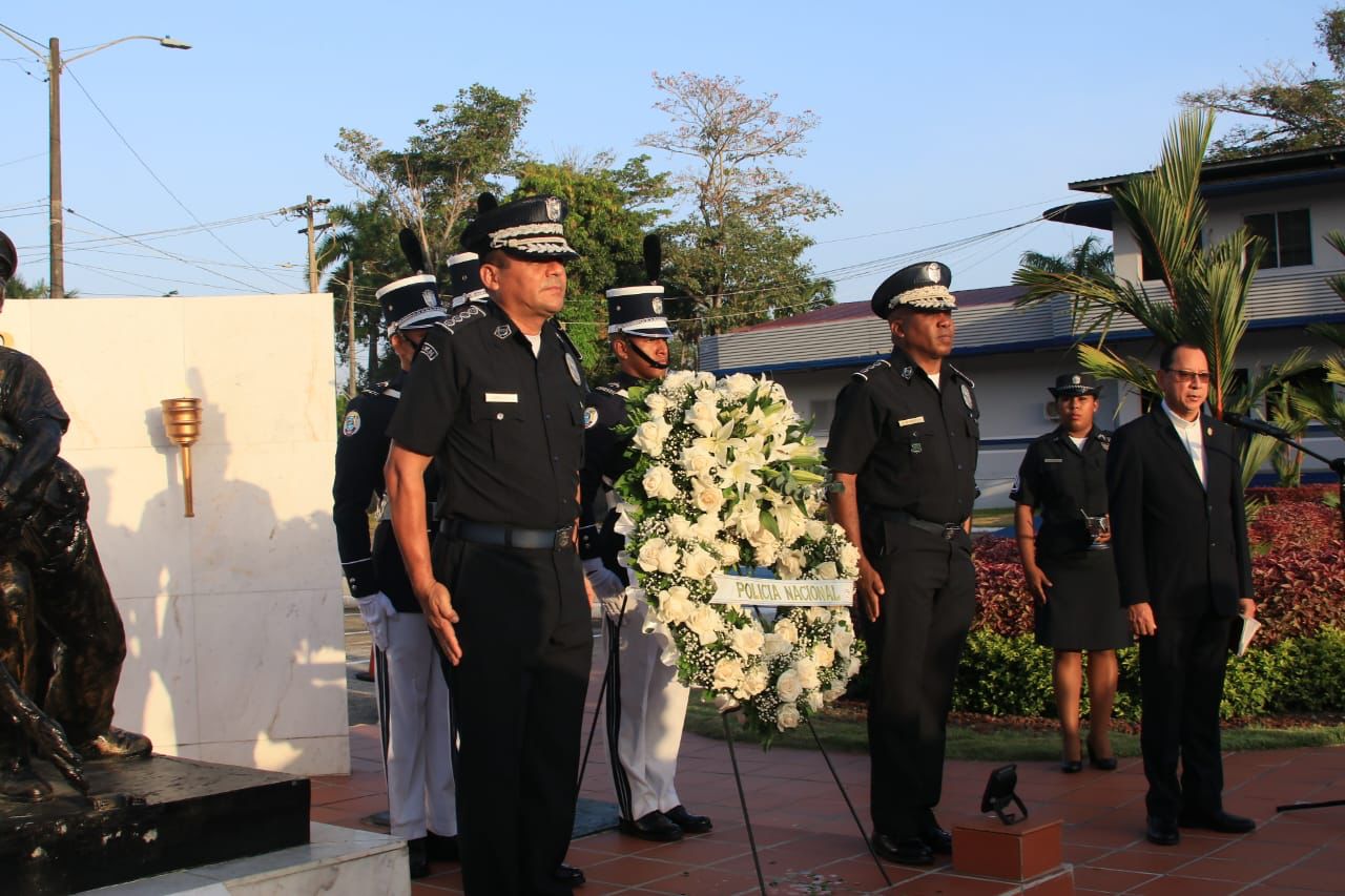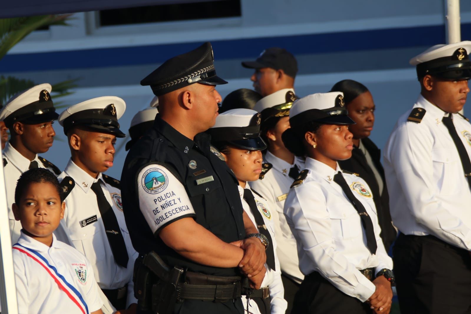 Unos 30 estudiantes participaron en la Ceremonia del Acto Cívico y homenaje a los héroes Postmortem en Cumplimiento del Deber, como parte del inicio a las actividades, en conmemoración al 14 de abril Día del Policía, ya son 86 Aniversario, fortaleciendo la Institucionalidad y a través de las estrategias operacionales se optimizan la Seguridad Ciudadana en todo el Territorio Nacional. El Director General John Dornheim junto a su esposa Claritza López de Dornheim, presiden el Acto Cívico, honrando a los héroes de la Patría, fallecidos en el cumplimiento del deber. Durante la ceremonia, el Director General John Dornheim acompañado por su esposa Claritza López de Dornheim, hicieron entrega de presentes a los estudiantes y docentes de los Centros Educativos Rufo Garay de Colón, y de Panamá el Instituto Nacional y la Escuela Bilingüe Pedro José Sosa, ubicados en la Ciudad Capital. |