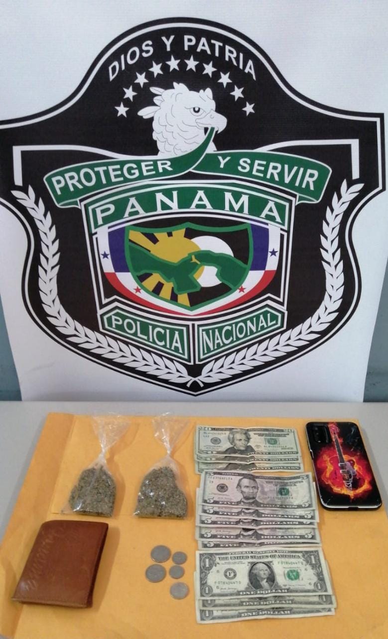 Unidades de la Policía Nacional, a través de la Dirección Nacional de Inteligencia Policial, de servicio en el área C de Paraíso aprehenden a una persona de 33 años de edad, quien reside en el distrito de San Miguelito y fue ubicada presuntamente cerca de un puesto de venta de sandías establecido en Merca Panamá, vendiendo posible droga; junto a un menor de 17 años. Al ser verificados por dos unidades policiales se le ubican dos envoltorios plásticos sellados que contienen una hierba seca que se presume sea la droga marihuana dentro de uno de los bolsillos delanteros. En otro bolsillo se le encontró la suma de B/.88.00, y un teléfono celular. Al menor de 17 años, con residencia en Curundú, se le encontró en su poder hierba seca marihuana y 13 sobrecitos con un polvo de color blanco que se presume sea cocaína. El caso del menor fue atendido por unidades del Servicio Policial de Niñez y Adolescencia; mientras que el adulto fue trasladado ante las autoridades judiciales para los trámites correspondientes. |