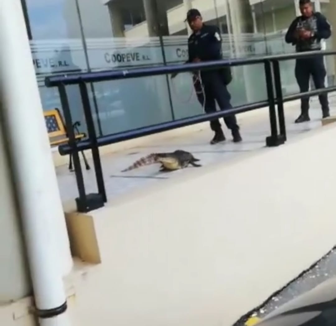 POLICÍA RESCATA A CAIMÁN QUE INGRESÓ A UNA COOPERATIVA EN LA CHORRERA
