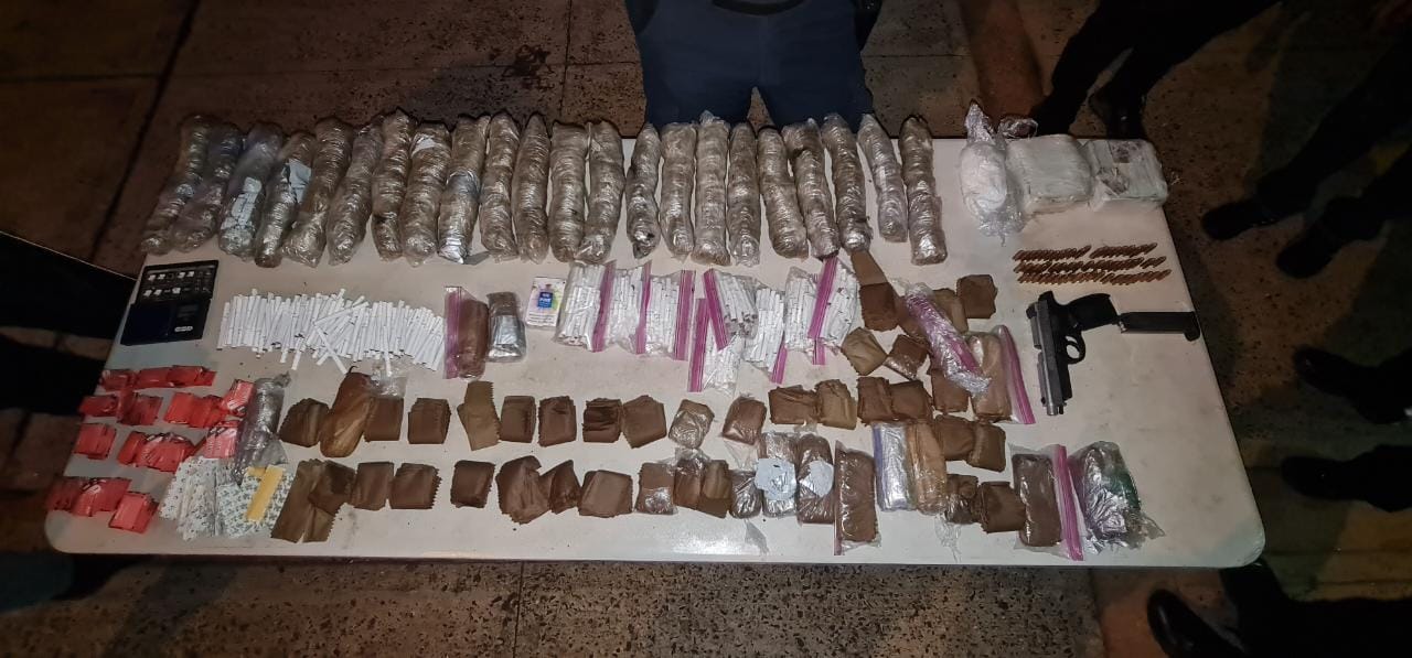 La Policía Nacional a través de las operaciones de Seguridad Externa del Centro Penitenciario La Nueva Joya, da con el hallazgo de un arma de fuego, 60 municiones calibre 9 milímetros, una pesa digital entre otros artículos prohibidos dentro del penal. Las investigaciones determinan, que durante los patrullajes de rastreo se ubica un neumático, que en su interior tenía 200 hojas de navajas de afeitar, 2,300 hojas de feeling, 300 cigarrillos, 25 envoltorios con presunta sustancias ilícitas. La Policía Nacional intensifica las operaciones de vigilancia y de búsqueda para mantener el orden, así como aprehender a los transgresores de la Ley que intentan cometer delitos en los perímetros del Centro Penitenciario La Nueva Joya. |