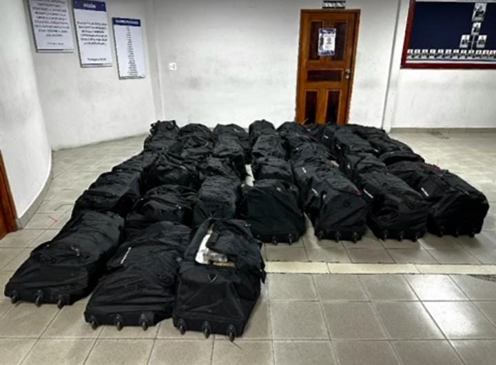La Policía Nacional, a través de la Dirección Nacional Antidrogas en coordinación con el Ministerio Público decomisa 1,500 paquetes con presunta droga en el contenedor de un puerto ubicado en el corregimiento Cristóbal, provincia de Colón. El Subcomisionado Jorge Domínguez, jefe de la Zona Policial de Colón indicó que los paquetes rectangulares y una bolsa plástica con presunta sustancias ilícitas estaban dentro de 38 maletas, ocultos en el contenedor que provenía de El Salvador con tránsito por Panamá, Holanda y destino final Alemania. Estas acciones son parte de las estrategias que desarrolla la Policía Nacional, enfocadas en neutralizar el trasiego de sustancias ilícitas, contra el narcotráfico y el crimen organizado. |