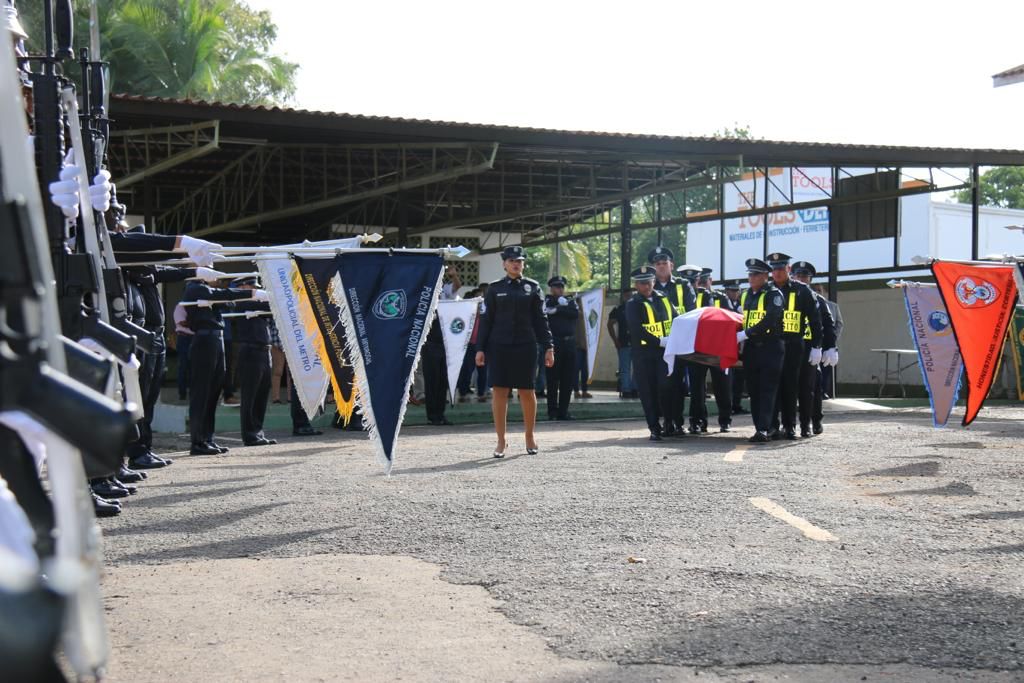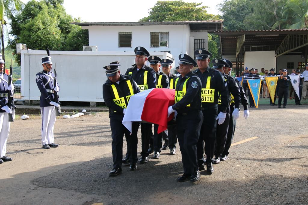 Con los honores merecidos se realizó el Homenaje Póstumo del Subteniente Post Mortem Amir Martínez, durante un acto en el que estuvieron presentes el Director General de la Policía Nacional, John Dornheim acompañado por el Ministro de Seguridad, Juan M. Pino y directores de los Estamentos de Seguridad. “A diario nos enfrentamos al peligro y arriesgamos nuestras vidas, lo que nos hace reflexionar sobre lo valioso de nuestra profesión, que nos dignifica ser policías. Hoy invitamos a los ciudadanos que creen en un país de bien a que nos sigan apoyando, porque la seguridad es asunto de todos”, indicó el Director General de la Policía Nacional, John Dornheim. “El dejó todo por el firme cumplimiento del juramento de Proteger y Servir, y su muerte no quedará en vano, será ejemplo de lealtad, honor y compromiso”, puntualizó Dornheim, quien hizo un llamado a los conductores a ser responsables en el manejo. Una calle de honor conformada por sus compañeros de uniforme escoltó el féretro, y seguido, se hizo el toque de silencio y los veintiún disparos de salva en homenaje a su memoria. Les correspondió al Ministro de Seguridad y al Director General de la Policía, entregarles a sus familiares las resoluciones de duelo y el kepi. Familiares, amigos y compañeros reunidos en la ceremonia que se realizó en el Parque Recreativo de la Policía Nacional en el distrito de David, Chiriquí, pidieron por el eterno descanso del Subteniente Martínez, quien el sábado 8 de julio falleció tras ser atropellado en el sector de Los Ruíces, cuando realizaba su labor. El Subteniente Post Mortem Amir Ángel Martínez, tenía 21 años y 5 meses de servicio en la Policía Nacional, de los cuales 16 laboró en la Dirección Nacional de Operaciones de Tránsito. |