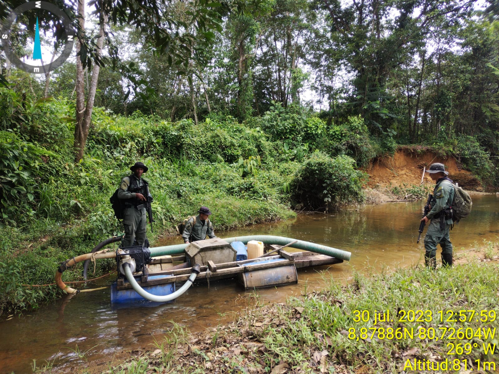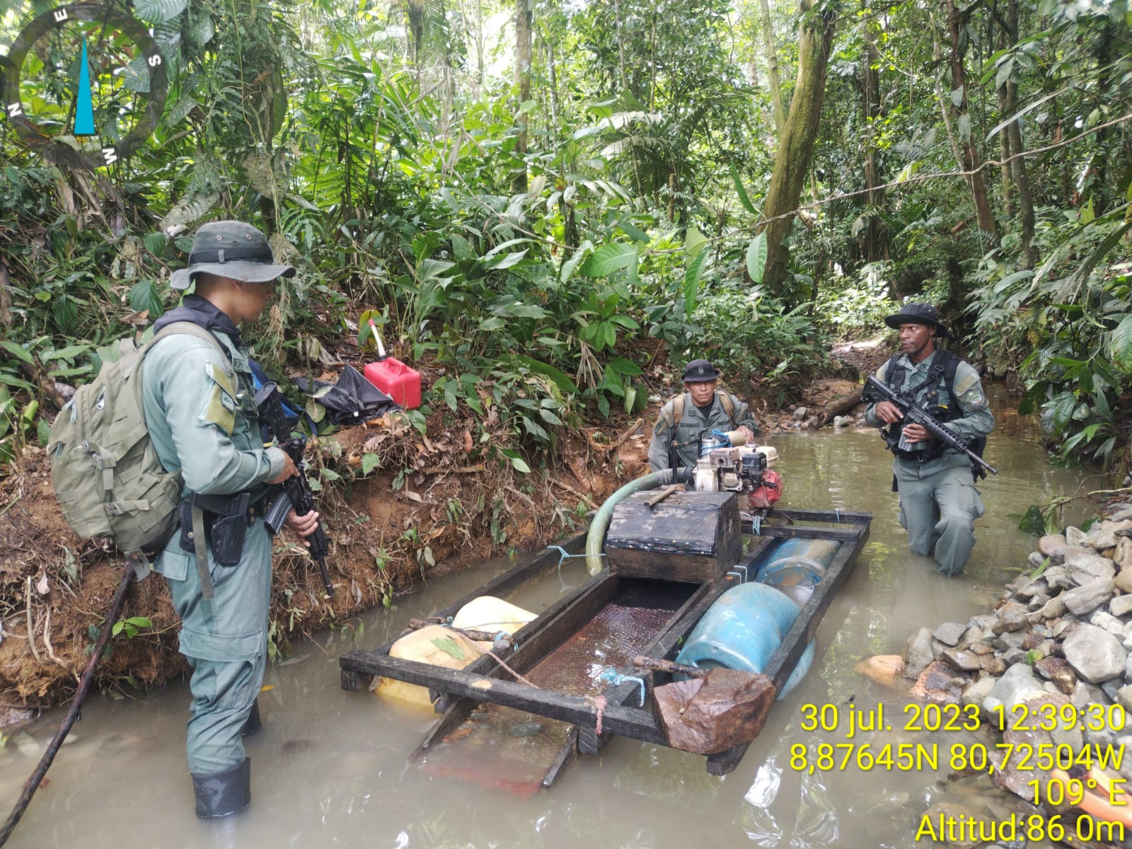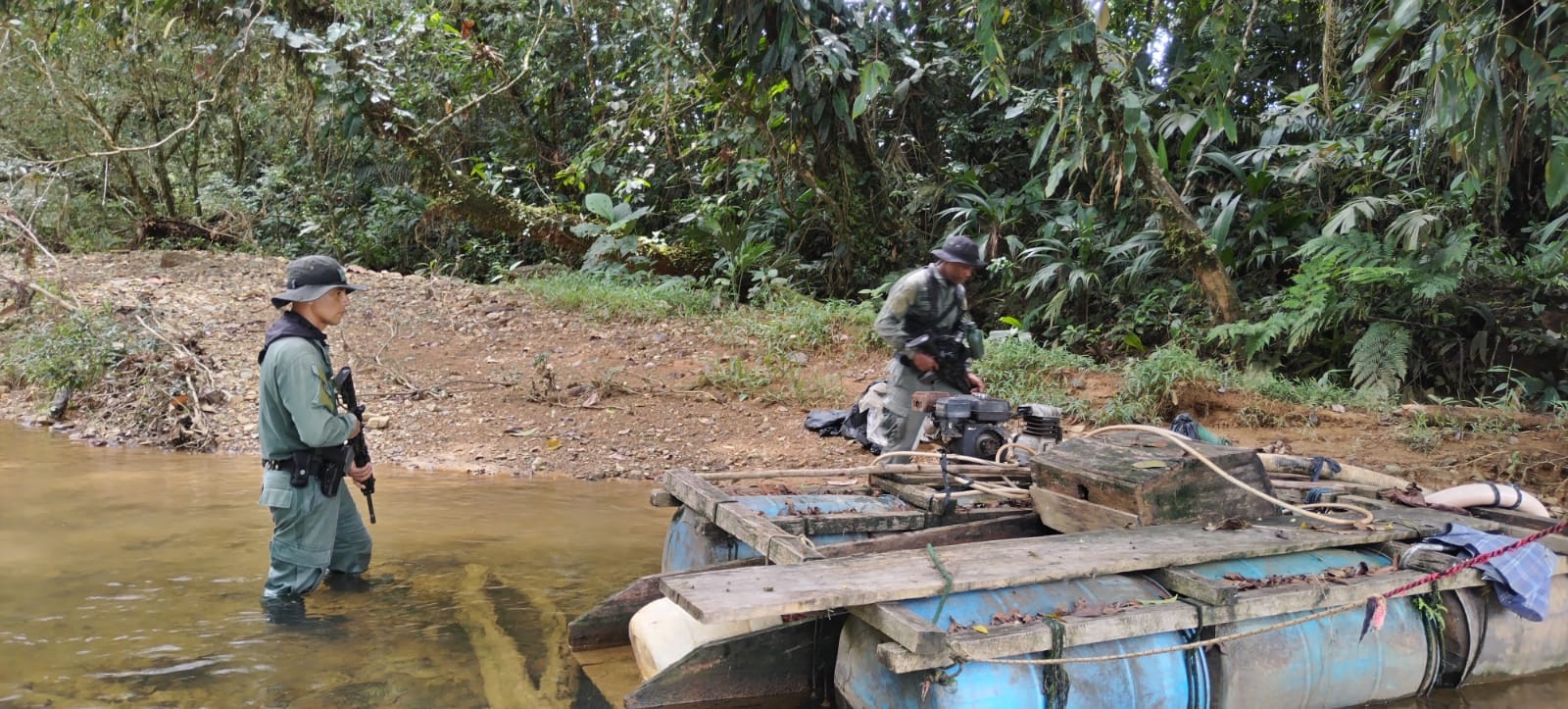 POLICÍA NACIONAL DAN CON EL HALLAZGO DE VARIOS EQUIPOS PRESUNTAMENTE UTILIZADOS PARA REALIZAR MINERÍA ILEGAL