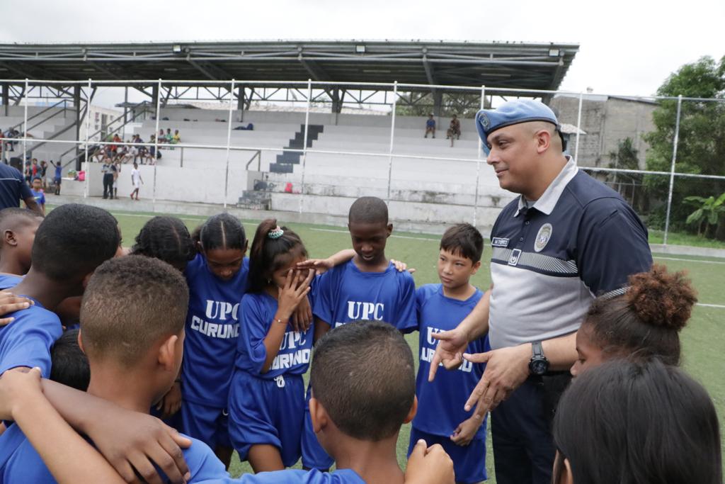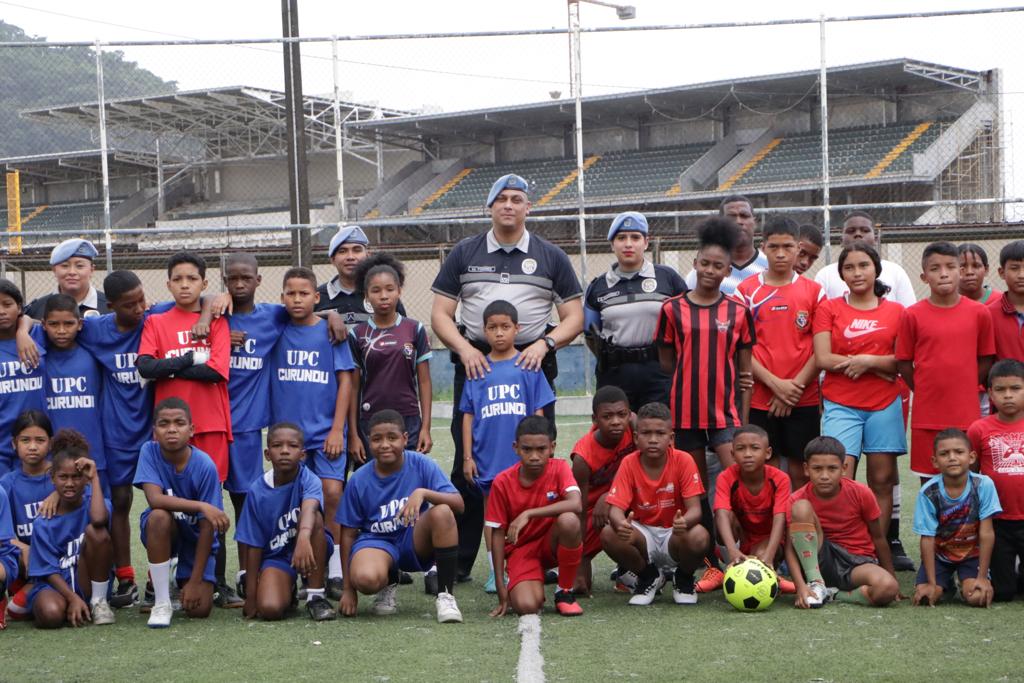Grandes vivencias juveniles e infantiles se entrelazan en el Cuadrangular de Fútbol Mixto, en las categorías (U-12 y U-14), conformada por diversos equipos de la Unidad Preventiva Comunitaria de Curundú, El Chorrillo, Pedregal en Chiriquí, Samaria y en Altos de Los Lagos, Colón. El Mayor Mauricio Torres, Jefe Encargado de la UPC dijo que, con estas operaciones dirigidas al desarrollo social, cultural y deportiva en la comunidad, han beneficiado a más de 1,500 niños en todo el país, donde ellos se integran positivamente y vivan en paz y tranquilidad en sus hogares. El cónclave deportivo se realizó en la cancha sintética, conocida como Islita, ubicada en el corregimiento de Curundú. |
