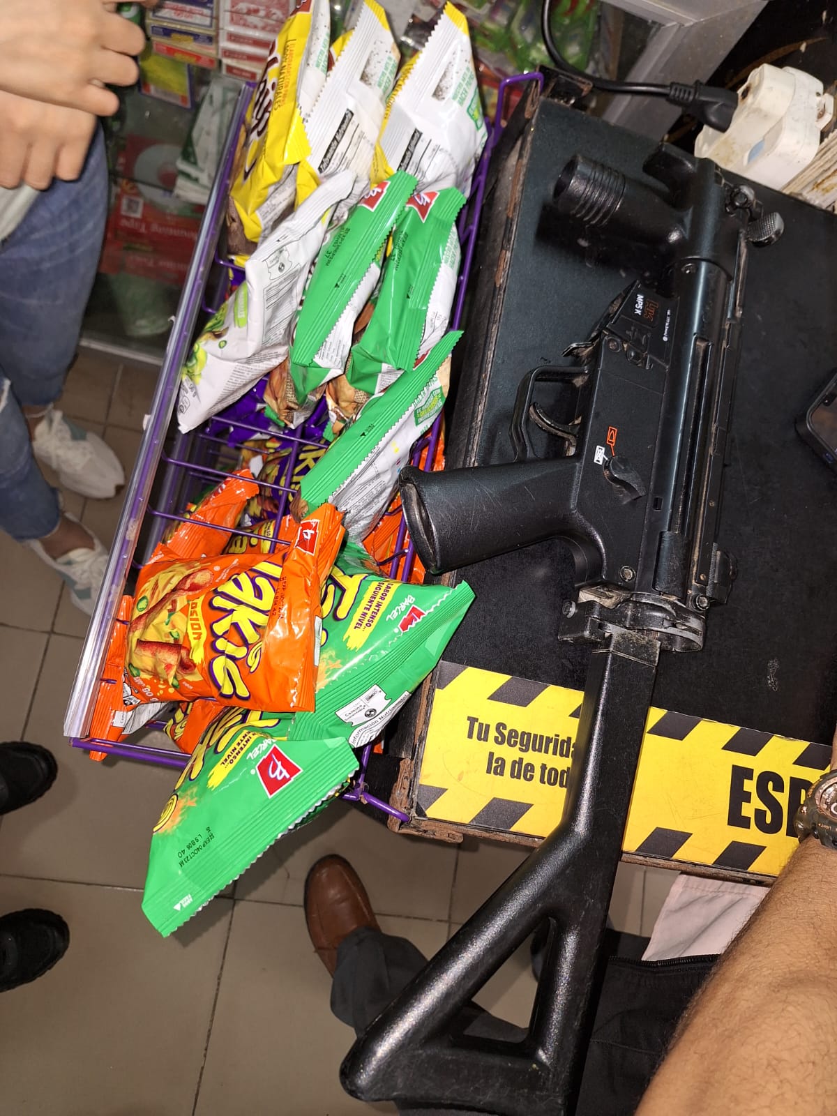Unidades de la Policía Nacional aprehenden a dos ciudadanos, un adulto y un menor de edad presuntamente vinculados al Robo de un local comercial ubicado en el sector de Villa Guadalupe dentro del distrito de San Miguelito informó el Subcomisionado Alexander Sánchez, Jefe de la Zona Policial de Rufina Alfaro. Tras el hecho se realizó una acción policial donde se logra el decomiso de una réplica de arma de fuego tipo MP 5. Los indicios junto a los sospechosos fueron puestos a órdenes de las autoridades judiciales correspondientes a fin de deslindar las responsabilidades de rigor. |