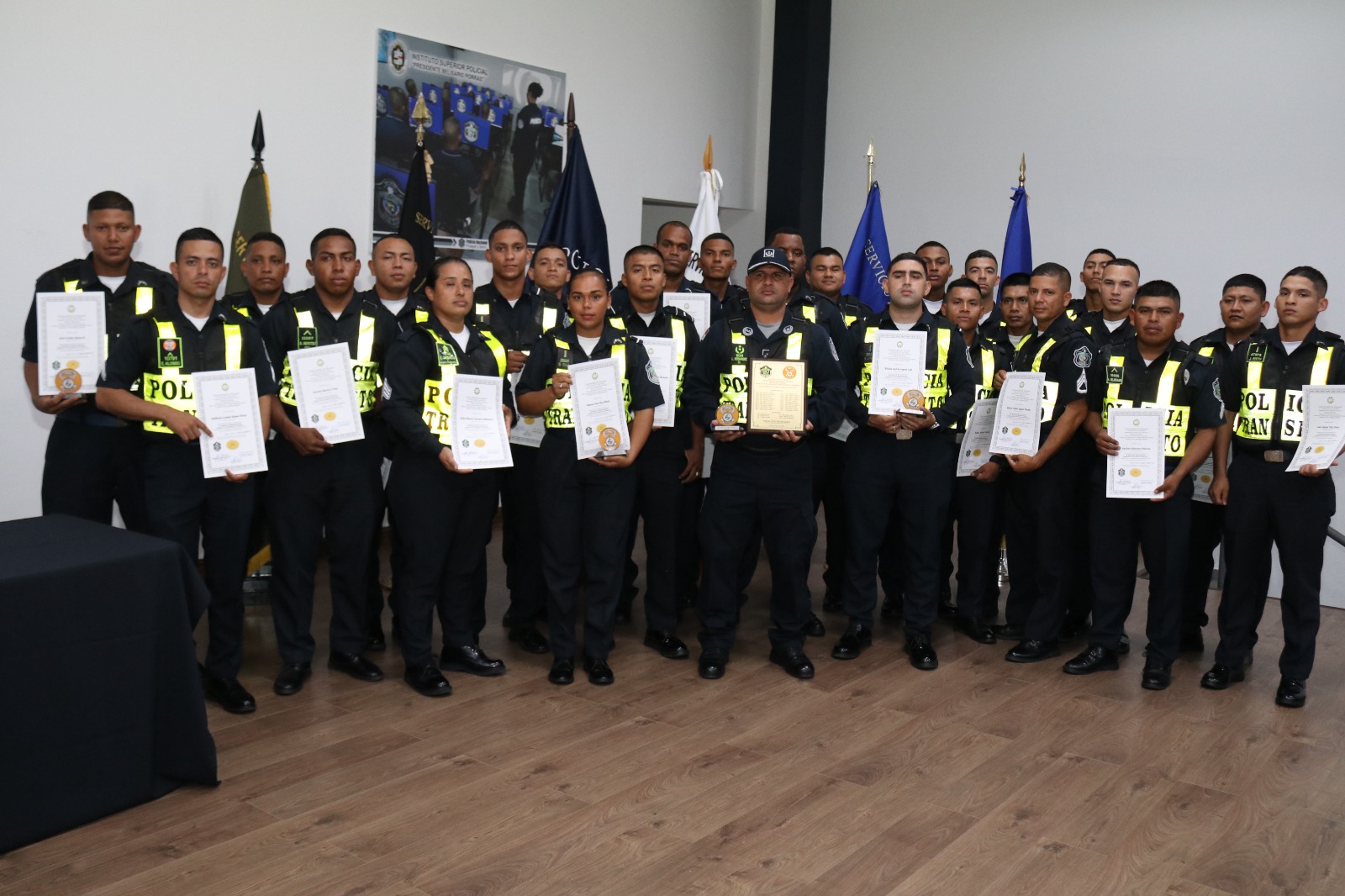 Le correspondió al Director Nacional de Docencia, Javier Sánchez, junto a miembros del Directorio de Estamentos de Seguridad entregar los certificados, a su vez exhortó a las unidades a aprovechar lo aprendido y ponerlo en práctica en su labor diaria con responsabilidad y profesionalismo. En la ceremonia que se realizó en el auditorio del Instituto Superior Policial (ISPOL), se le entregó reconocimientos a los primeros puestos de los cinco diplomados, a los instructores, docentes