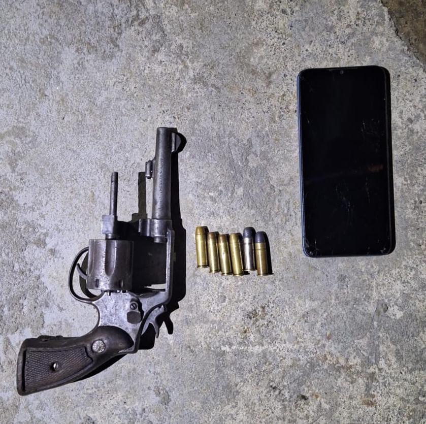Durante la diligencia se logra ubicar dentro de la residencia un arma de fuego tipo revólver con 6 municiones y un teléfono celular.