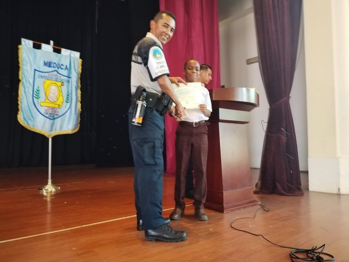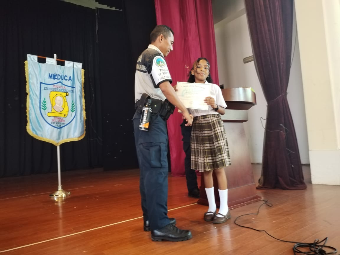 La Policía Nacional a través de sus Programas Preventivos que realizan las unidades del Servicio Policial de Niñez y Adolescencia gradúan a 80 estudiantes del Centro Educativo Genzier, ubicado en la provincia de Colón.