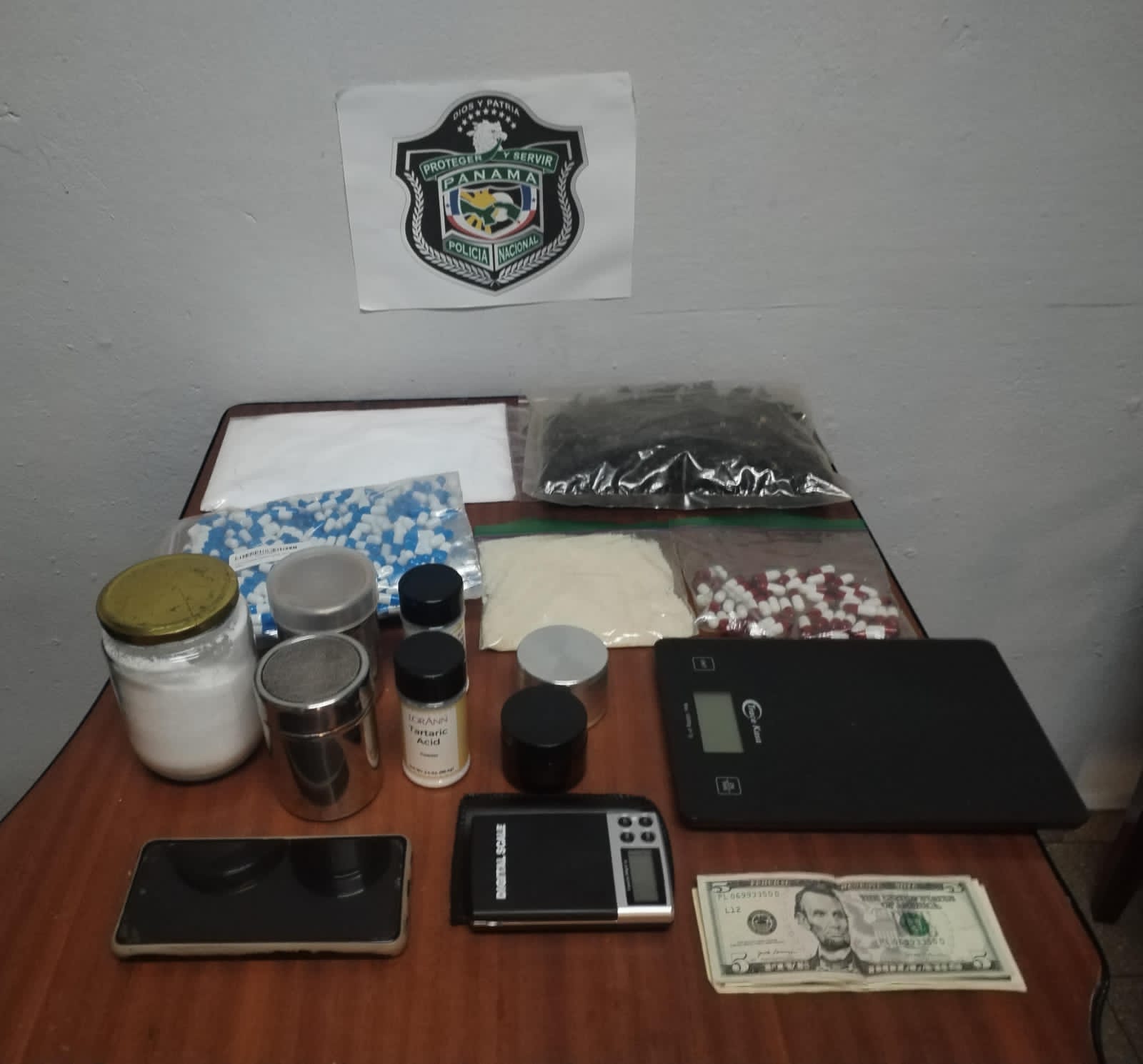 La Policía Nacional atraves de la Dirección Nacional de Inteligencia Policial en conjunto con el Ministerio Público, en el Corregimiento de Bella Vista, PH bella vista, aprehenden a un ciudadano 39 años, tras decomisarle cientos de cápsulas de color azul con blanco de presunta sustancia ilícita. Al cuidadano también se le decomisan varios frascos de vidrios y de metal que en su interior mantenían polvo blanco que se presume sea droga, pesas digitales, trituradores, un teléfono celular y B/. 215 en efectivo. El sujeto junto a los indicios fueron puestos a órdenes de las autoridades judiciales para su debido trámite correspondiente. |