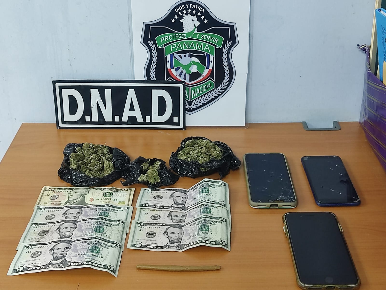 En la acción policial realizada en el corregimiento de José Domingo Espinar, Sector de Villa Lucre, los uniformados ubican 2 envoltorios de color negro contentivos de hierba seca presunta marihuana, 1 bolsita transparente contentiva de polvo blanco se presume sea cocaína, un cigarrillo de fabricación casera con posible sustancia ilícita, B/. 40.00 en efectivo, tres celulares y un vehículo.