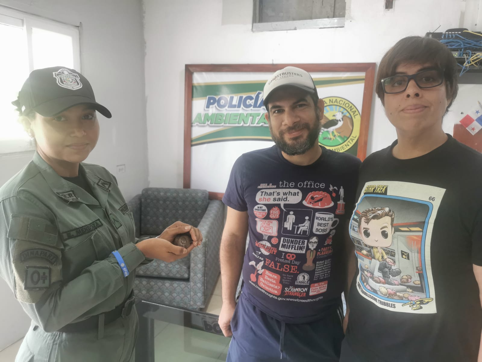 Unidades de la Policía Nacional de servicio en la Dirección Nacional Ambiental, Rural y Turística luego de un reporte de la ciudadanía a través de una llamada telefónica, rescataron un oso hormiguero que se encontraba en las inmediaciones de la Zona Franca de Albrook. Este animal se le encuentra comúnmente en selvas y bosques tropicales. Se busca promover la educación ambiental a fin disminuir el número de muertes de osos hormigueros por atropellos. El animal, luego de ser evaluado por un médico veterinario, fue reubicado finalmente en su hábitat natural en Gamboa. |