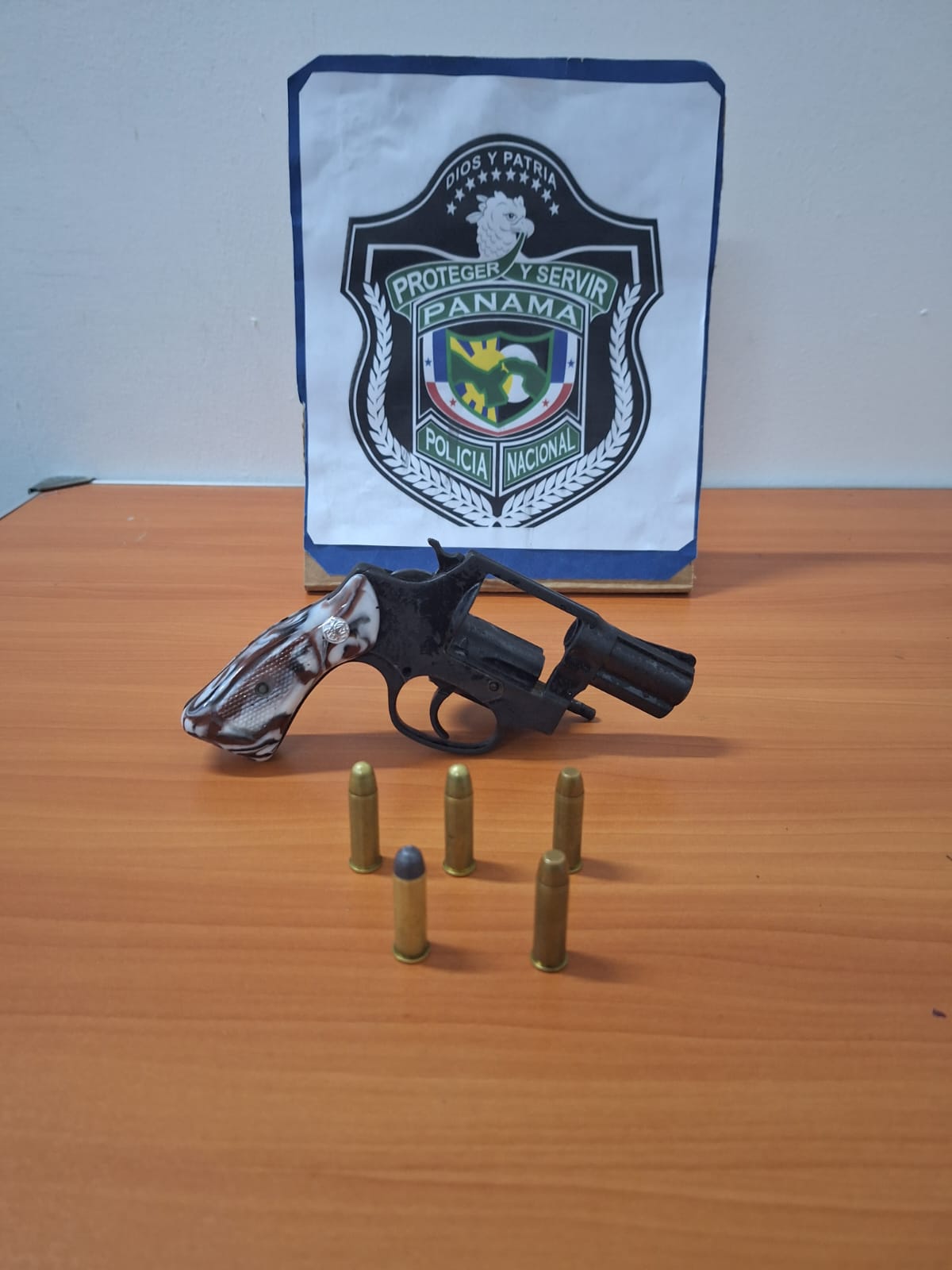 En el sector de El Pedernal, corregimiento de Chilibre unidades de la Policía Nacional mediante recorrido preventivo aprehenden a dos sujetos a quienes se les decomisa un arma de fuego, tipo revólver y 5 municiones.