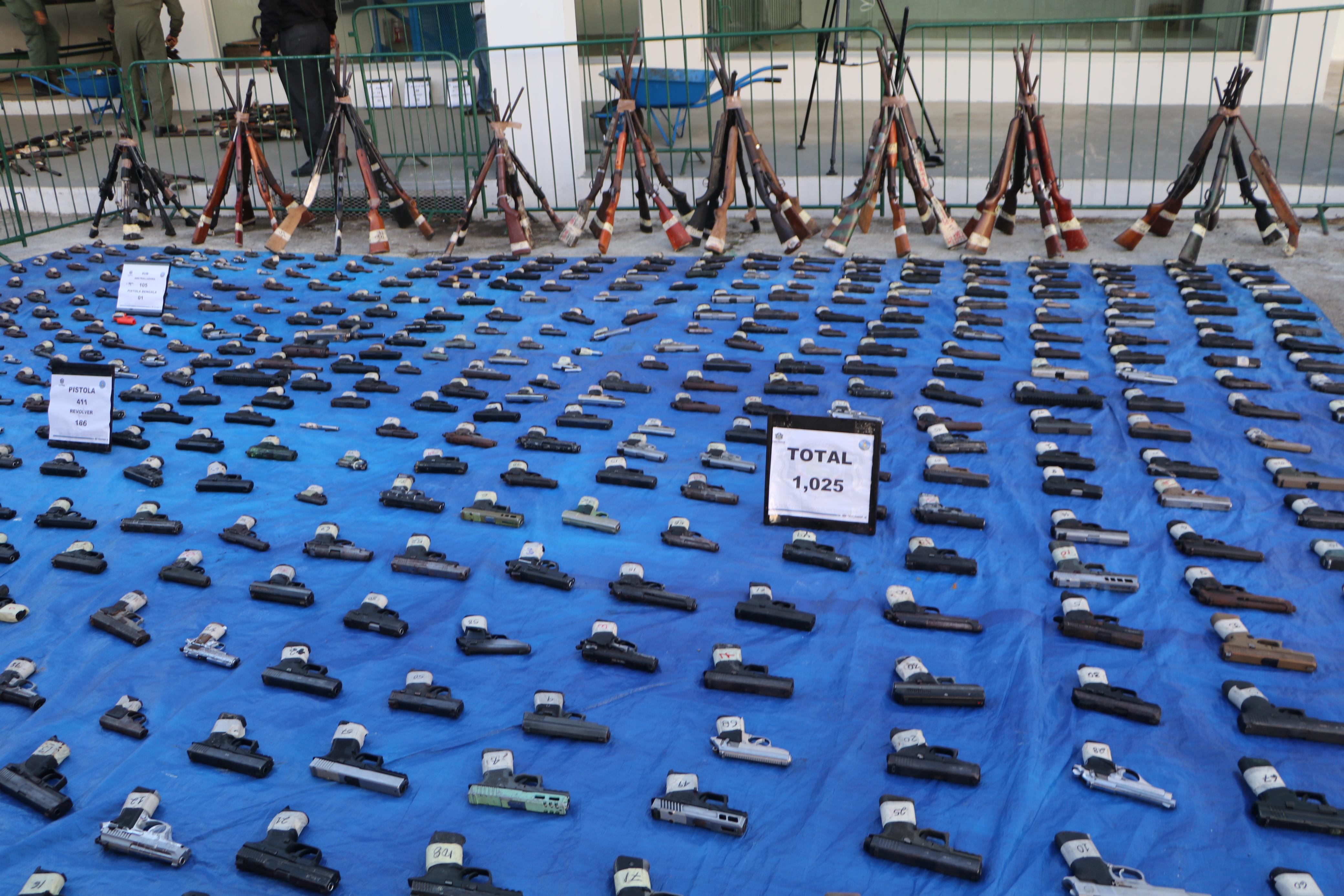 Entre los decomisos se encuentran: 409 pistolas, 186 revólveres, 80 escopetas, 53 rifles, 45 rifles de pellets, 2 niples, 72 fusiles, 105 subametralladoras y 4 escopetas de fabricación casera.