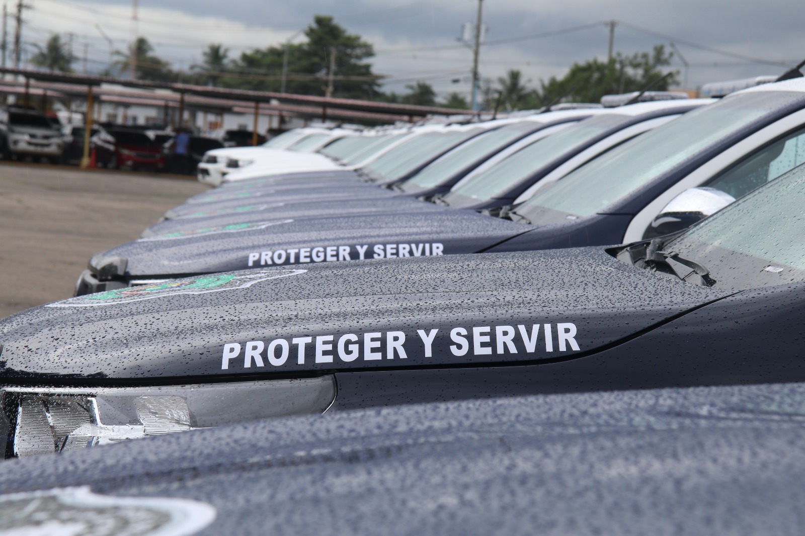 Con la finalidad de fortalecer las capacidades operacionales y tácticas como transporte para la movilización de las unidades policiales el Ministro de Seguridad Pública, Juan Manuel Pino, hizo entrega de 56 vehículos tipo Pickup, doble cabina al Director General de la Policía Nacional, John Dornheim.