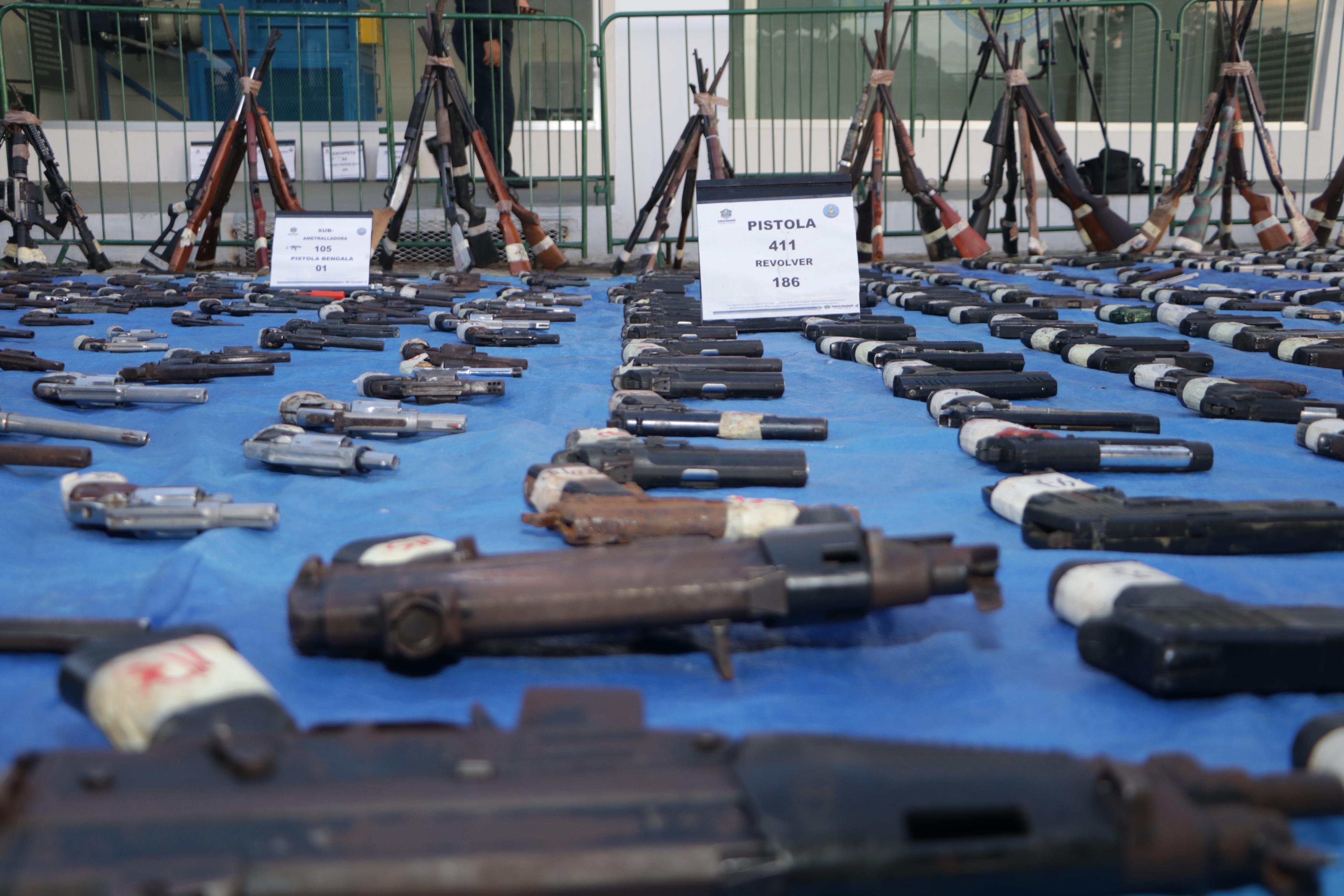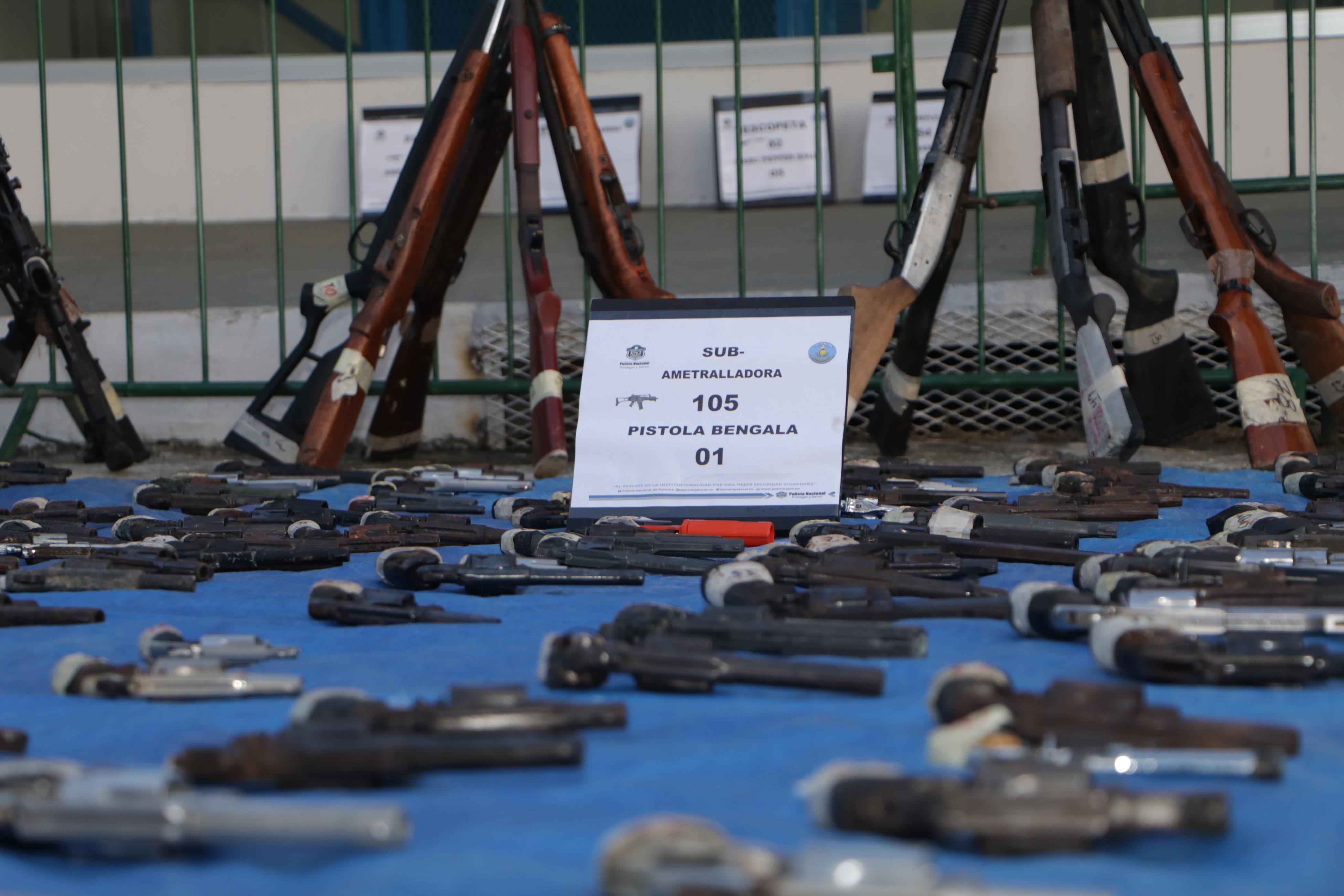 UNAS 1, 025 ARMAS DE FUEGO FUERON DESTRUIDAS DURANTE UNA CEREMONIA EN LA POLICÍA NACIONAL