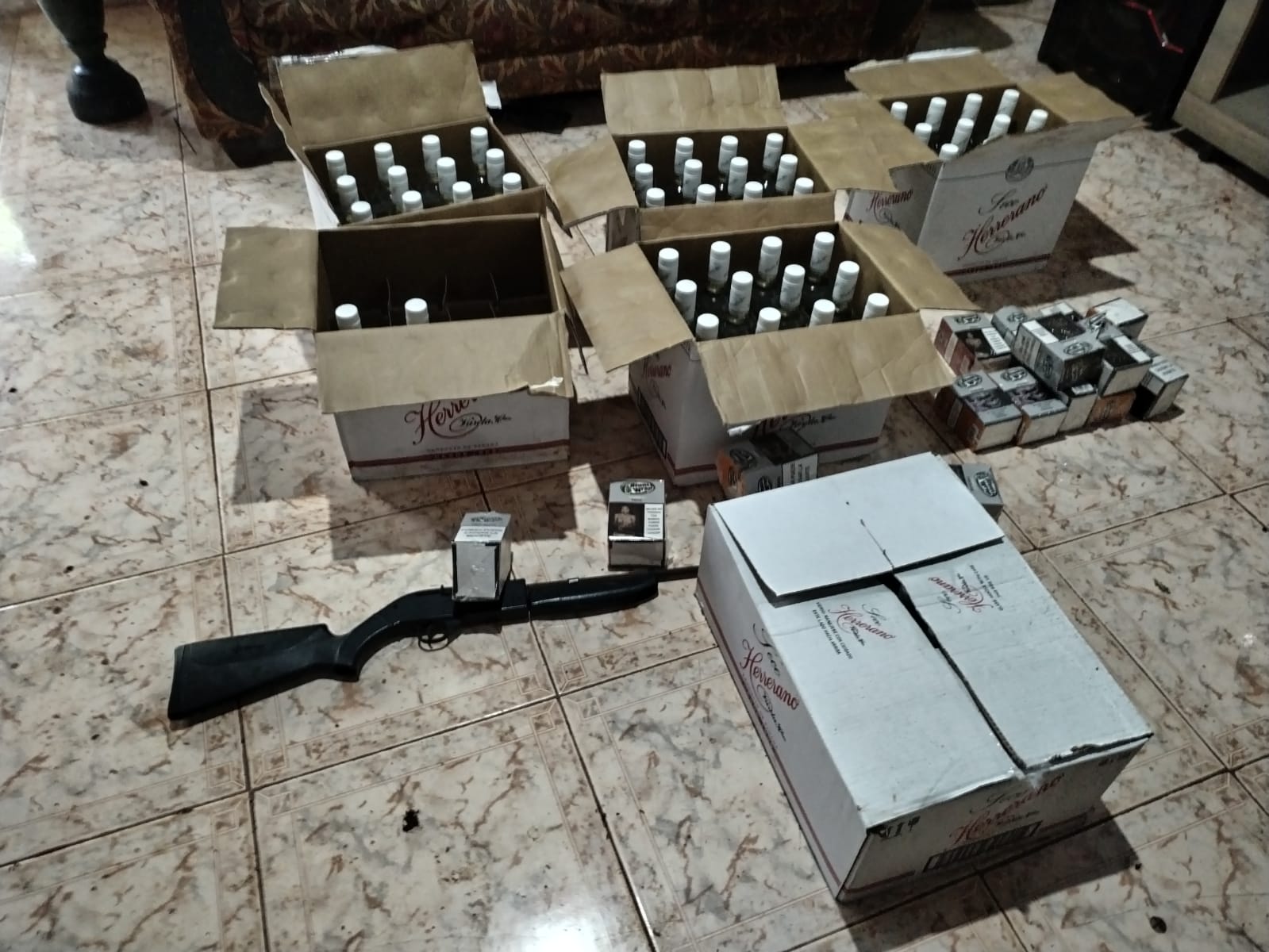 La Policía Nacional aprehende a una pareja, mediante diligencia de allanamiento en conjunto con el Ministerio Público, en el distrito de Arraijan, corregimiento de Burunga, Calle Guayacán. Las investigaciones determinan que durante la aprehensión de la pareja, se decomisaron dos bolsas de regular tamaño con presunta droga, además de seis cajas de licor, más de B/. 2,700.00 en efectivo, un rifle de Pellets, y varias cajas de cigarrillos, y otras mercancías de dudosa procedencia. Tanto los indicios como las personas aprehendidas fueron puestas a órdenes de las autoridades competentes para los trámites de rigor. |