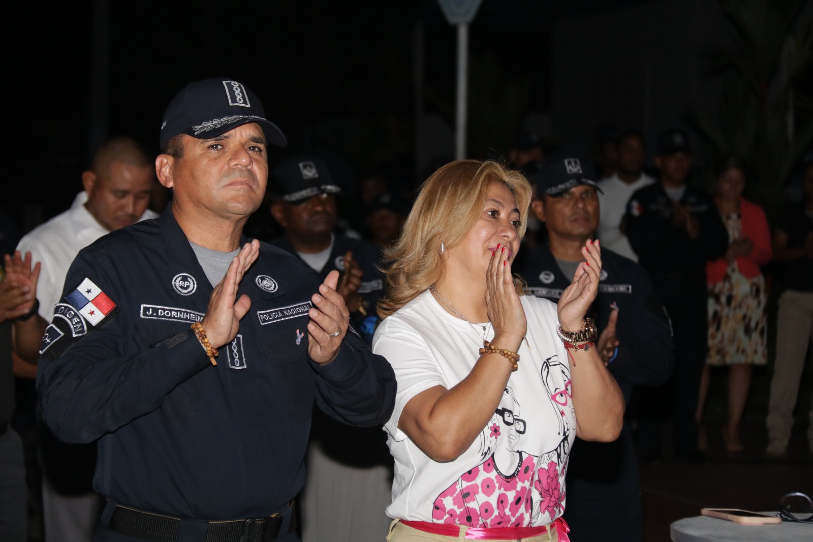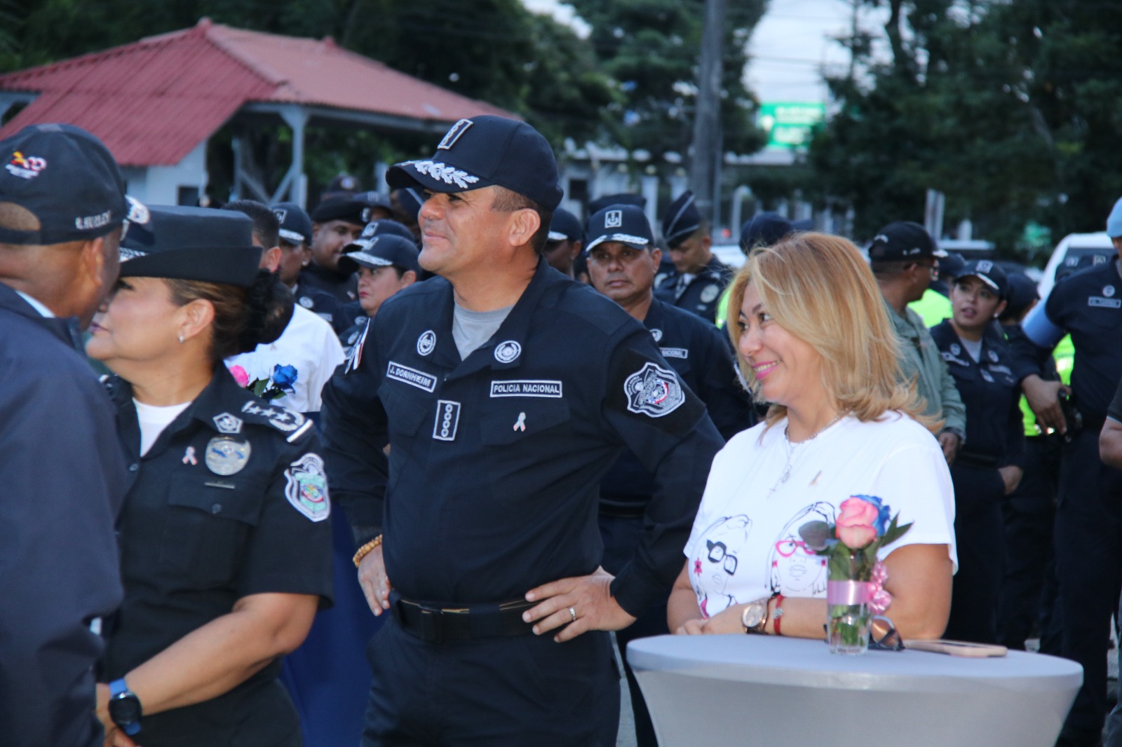 "Hoy celebramos la vida, luchando juntos", contra el Cáncer de Mama y Próstata, en el marco de esta Campaña Nacional en la sede de la Policía Nacional, se realizó el encendido de Luces presidido por el Director General de la Policía Nacional, John Dornheim junto a su esposa Claritza López de Dornheim, acompañados por los Miembros del Directorio Policial, unidades policiales e invitados especiales. El Director Policial hizo un llamado a la conciencia de todas personas para que cuiden su salud, a su vez enalteció el compromiso de la Institución de Seguridad Pública con esta misión de vida, ante la convocatoria de la Organización Mundial de la Salud y en nuestro país, a través del Despacho de la Primera Dama. La Cabo 1ro.Yarlen Pittí de servicio en la DNIJ en su testimonio de vida manifiesta la importancia de prevención temprana y que hoy mantiene la esperanza de obtener su pronta recuperación, ya que se encuentra en la fase de observación. Por otra parte, la Doctora Elva Macrini de Jaén, Ginecóloga y sobreviviente de cáncer de mama, nos dio a conocer su fuerza y valentía para enfrentar esta dura batalla contra esta enfermedad, puede ser curable al ser detectada a tiempo. En el mes de la prevención, la Policía Nacional continúa uniendo fuerzas contra el cáncer. |