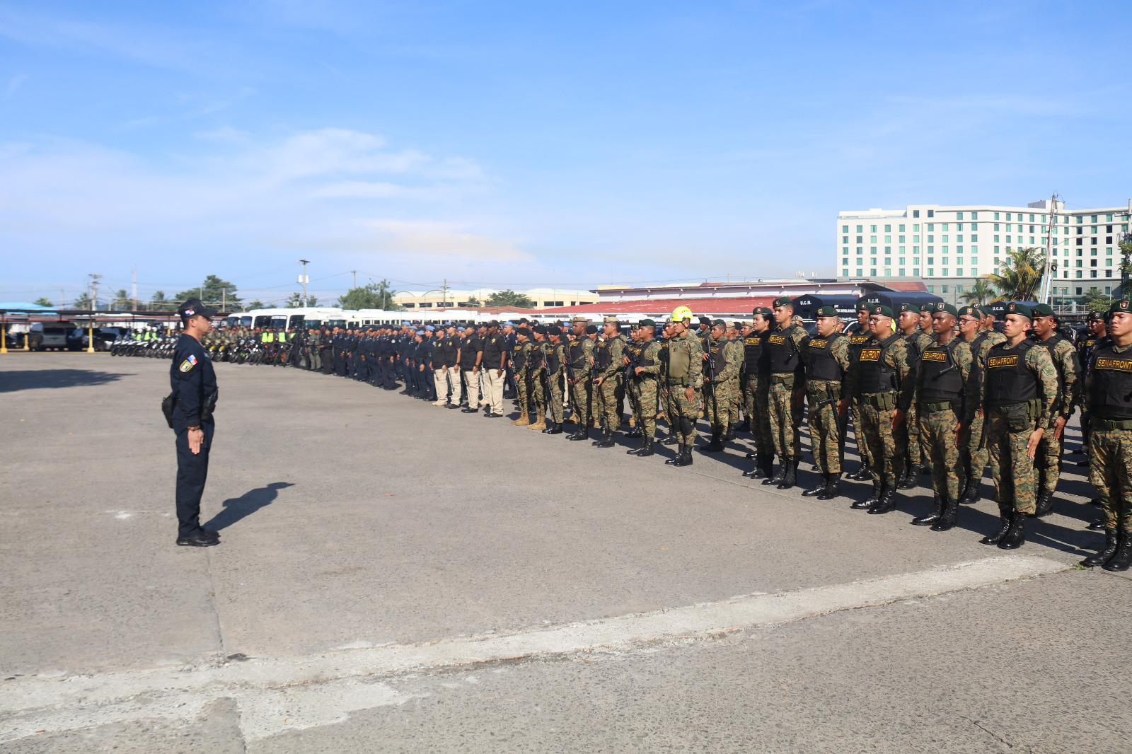 Durante su intervención, el ministro de Seguridad Pública, Juan Manuel Pino, agradeció a las unidades el compromiso que tienen con la seguridad del país y los instó a seguir trabajando para combatir a grupos criminales. Al momento de anunciar el inicio de las acciones y en presencia de los directores de los estamentos de seguridad, el ministro Pino dijo que es una operación de seguridad que garantizará la seguridad ciudadana y la lucha contra el crimen organizado.