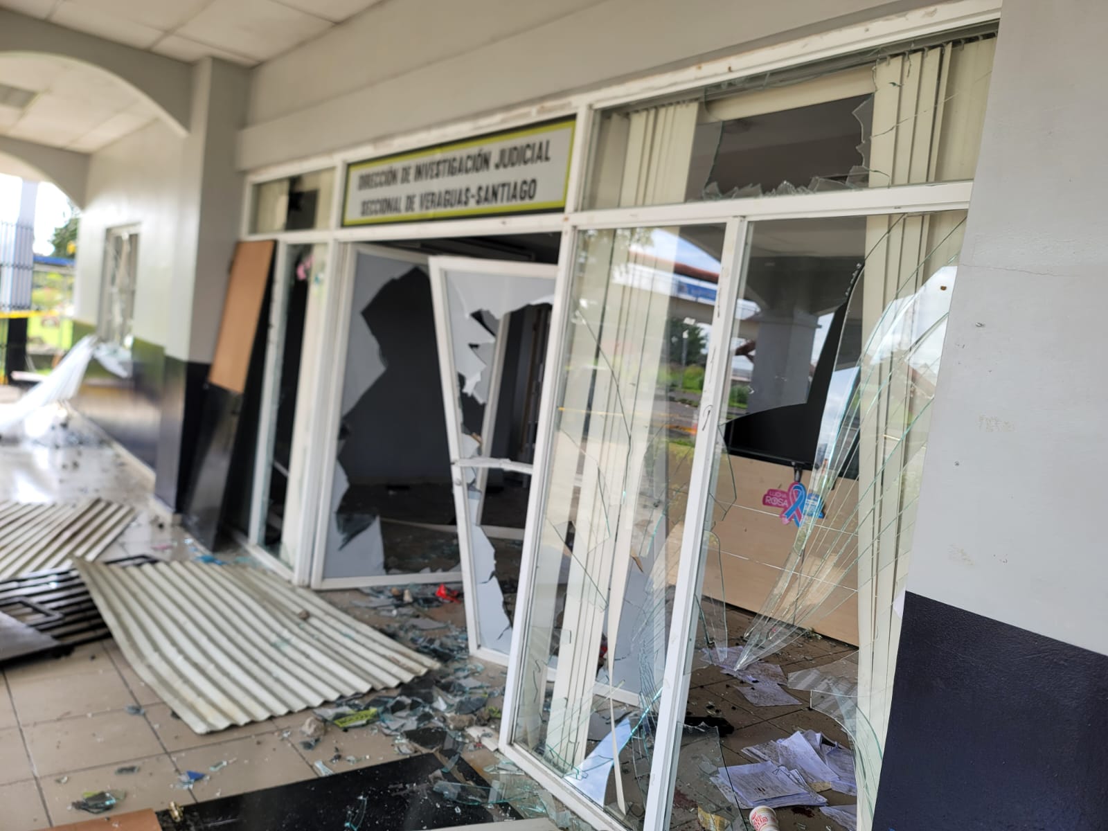 Durante las protestas registradas en horas de la noche de ayer y madrugada de hoy, la Policía Nacional atendió casos de hurtos, daños a la propiedad privada además de actos de vandalismo, que culminaron con cuatro unidades policiales lesionadas. Se reportó el hurto de dinero en efectivo que se mantenía en el área de secretaría, luego de violentar y romper una puerta de vidrio para accesar a la oficina de una de la institución. Entre los daños a equipos tecnológicos se encuentran 22 computadoras, dos impresoras, routers, teléfonos, monitor de cámaras, aires acondicionado, cámaras de video vigilancia , teléfonos inalámbricos y fax También se incluyen puertas de vidrio y de madera, así como ventanas francesas, vidrios grandes, sofá, tableros grandes de madera, cubículos divisores y un archivador. Entre los artículos hurtados se contabilizan un DVR de las cámaras de video vigilancia, un carné de policía, chaleco y gorra de la DIJ, uniforme táctico de la DIJ, uniforme de fatiga, botas y zambrón entre otros accesorios propios del servicio policial. |