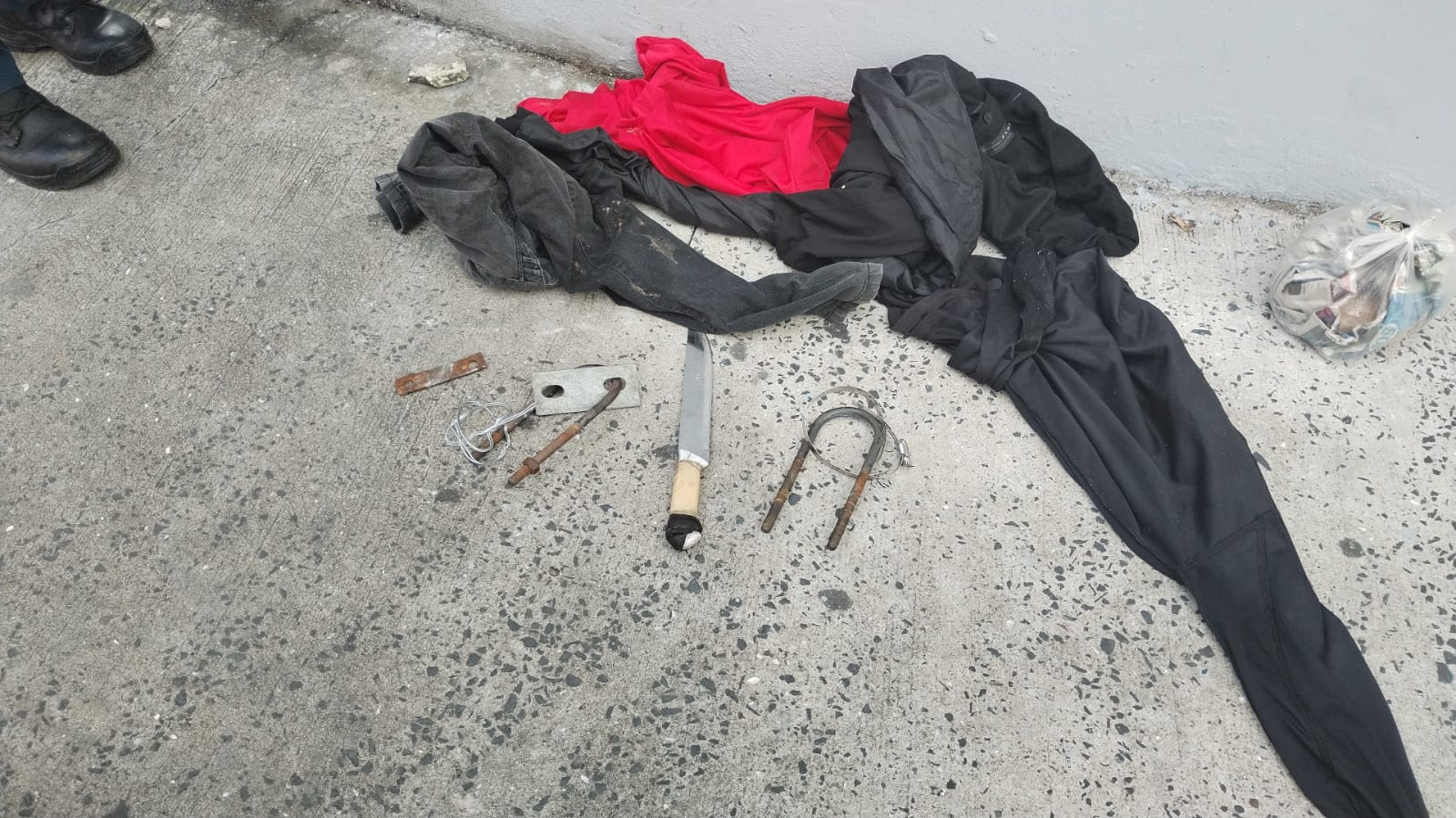 La Policía Nacional da con la aprehensión de dos hombres quienes fueron observados a través de las cámaras de videovigilancia, realizando cortes en las vallas ubicadas en la 5 de Mayo. Al momento de ser abordados por las unidades policiales se les ubicó varias herramientas y parte del reforzamiento de las vallas. Estas personas fueron remitidas ante las instancias correspondientes. |