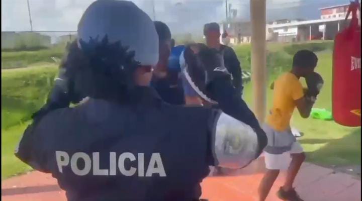 Un aproximado de 60 niños, niñas y adolescentes participan activamente de las clases de boxeo, las cuales son impartidas de lunes a viernes en horario matutino, por los instructores de la Unidad Preventiva Comunitaria (UPC), de Altos de Los Lagos, en la provincia de Colón, con la misión de desarrollar entornos seguros y saludables. Además de las actividades deportivas a nivel boxístico, también el grupo juvenil desarrolla técnicas y habilidades en valores, la autoestima, disciplina entre otras actividades sociales para tener una sana convivencia propia de la edad. El Mayor Royván Rudas, Jefe de la UPC de Altos Los Lagos, reiteró la invitación a los padres de familia para que sus hijos puedan participar en estas actividades deportivas y sociales que se implementan todo el año, para brindarles una sana diversión y, ahora en temporada de vacaciones escolares, a través de los programas de Verano Feliz 2024. Los participantes señalaron sentirse contentos con este tipo de actividades porque han conocido la importancia de la disciplina en el boxeo. La Policía Nacional a través de la Unidad Preventiva Comunitaria lleva a cabo diferentes actividades deportivas que buscan alejar a nuestra juventud del flagelo de la delincuencia. |
