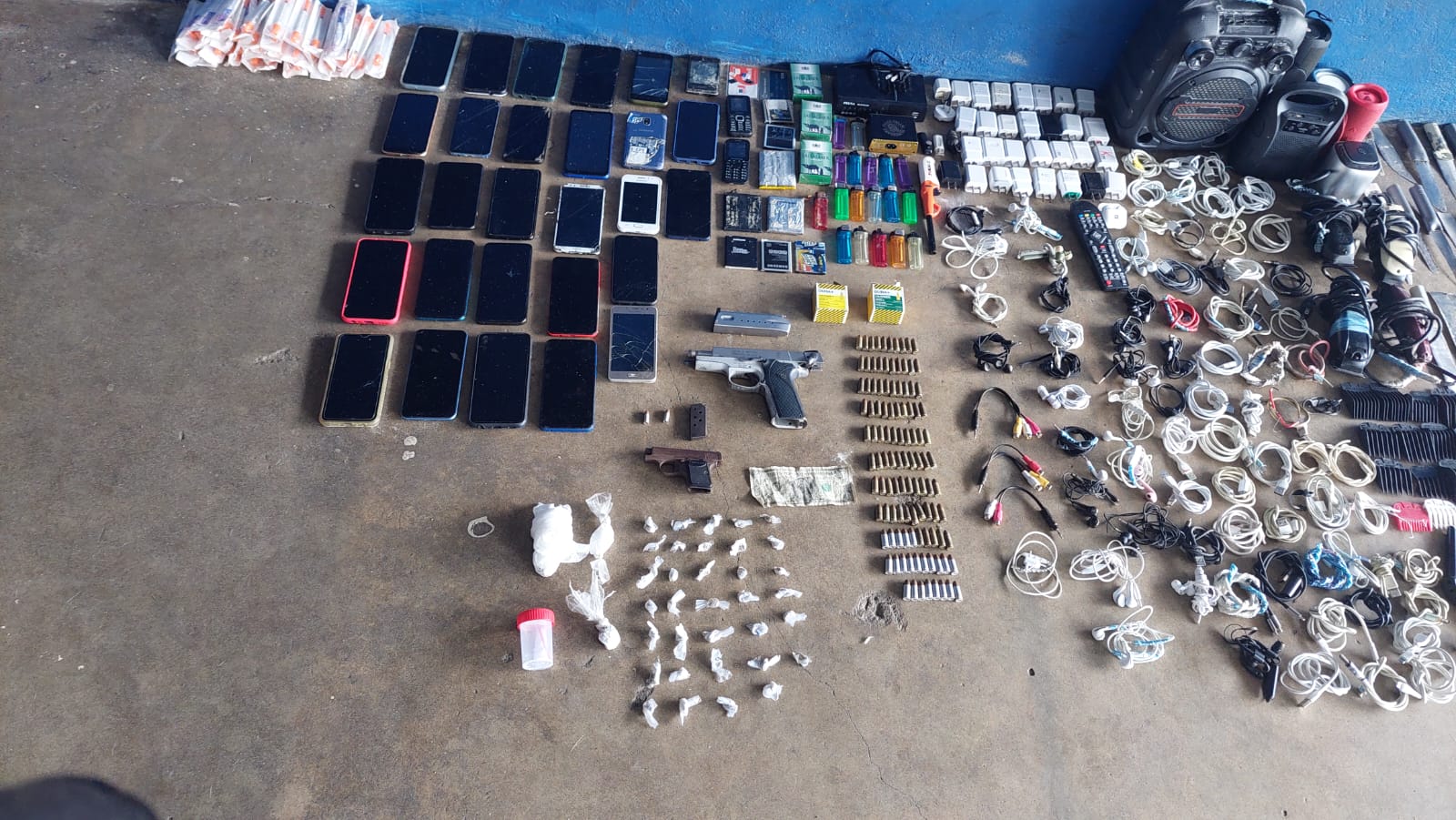 La Policía Nacional en coordinación con la Dirección General del Sistema Penitenciario y el Ministerio Público realizó el operativo de requisa Armagedón IX en el Centro Penitenciario Nueva Esperanza, donde se decomisan 2 armas de fuego, 110 municiones de diversos calibres, presuntas sustancias, equipos tecnológicos y electrónicos.