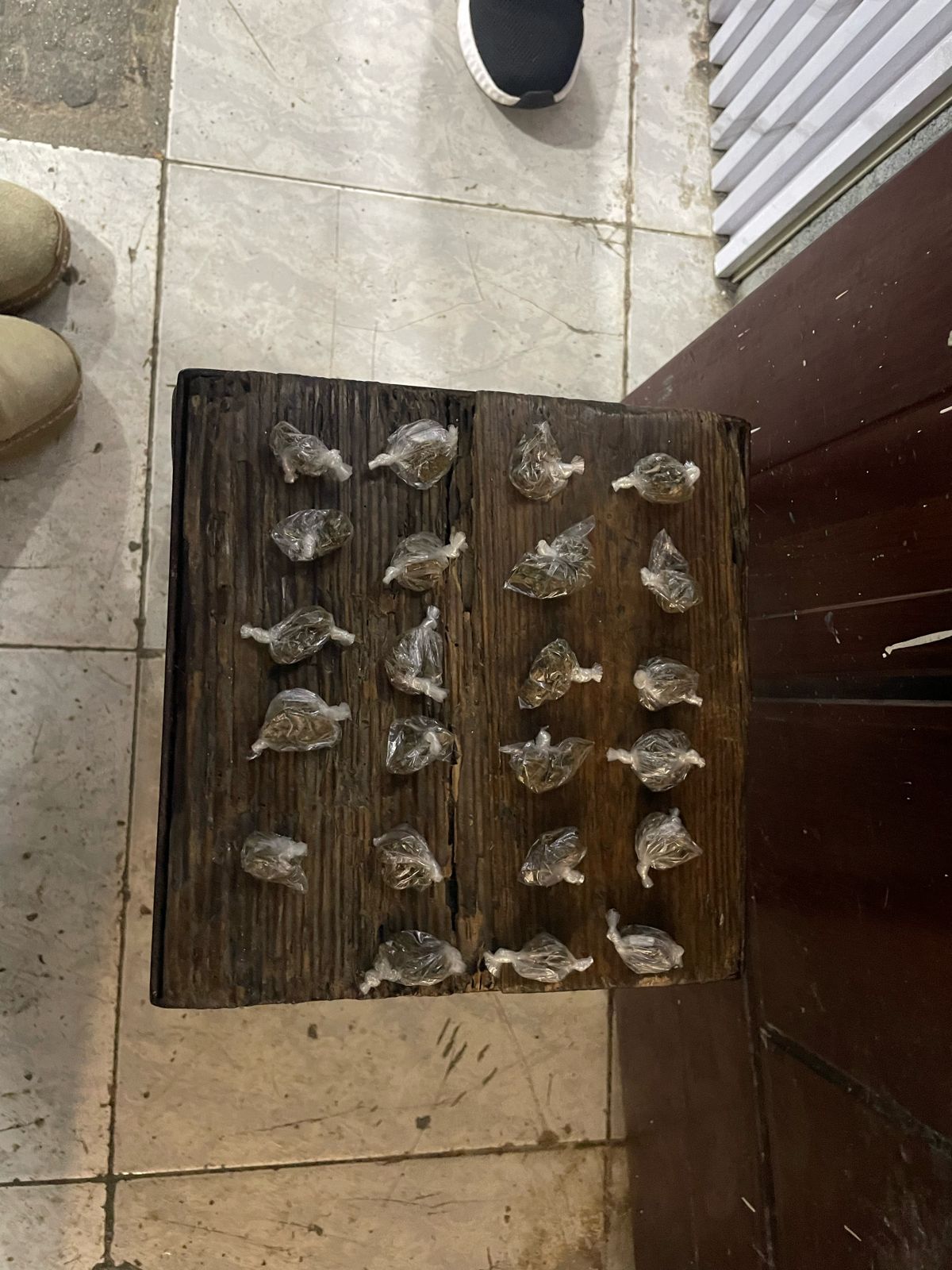 Durante la diligencia de allanamiento se logra la aprehensión de cinco personas entre ellas un menor de edad a quienes se les decomisa gran cantidad de sobres transparente con hierba seca que se presume sea marihuana, que estaba oculta en el cielo raso de la vivienda y de otros artículos utilizados para el tráfico de drogas.