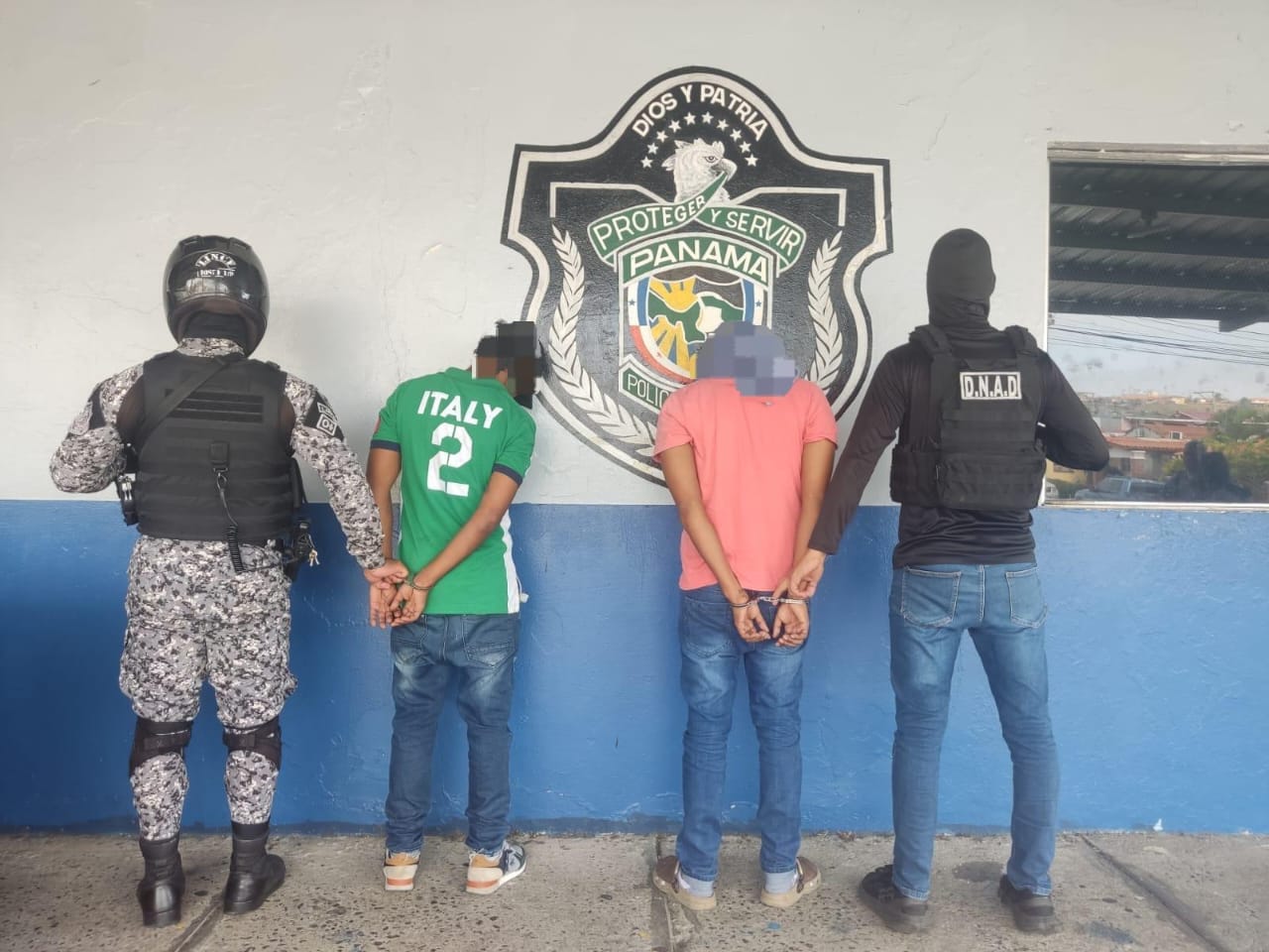 Luego de una diligencia de registro realizada por unidades de la Policía Nacional se aprehende a un ciudadano de 36 años y otro de 38 años, en Plaza Rey de Villa Lucre, distrito de San Miguelito. A los sospechosos, las unidades policiales les decomisan los siguientes artículos: un sobre plástico transparente que contiene un polvo blanco que se presume sea cocaína, además de una bolsita plástica transparente que en su interior contiene materia vegetal que se presume sea marihuana. También se les decomisa la suma de 80 dólares en efectivo y un teléfono celular, todo esto dentro de un vehículo amarillo tipo taxi. Los sospechosos y los indicios fueron puestos a órdenes de la Fiscalía de Droga de San Miguelito. |