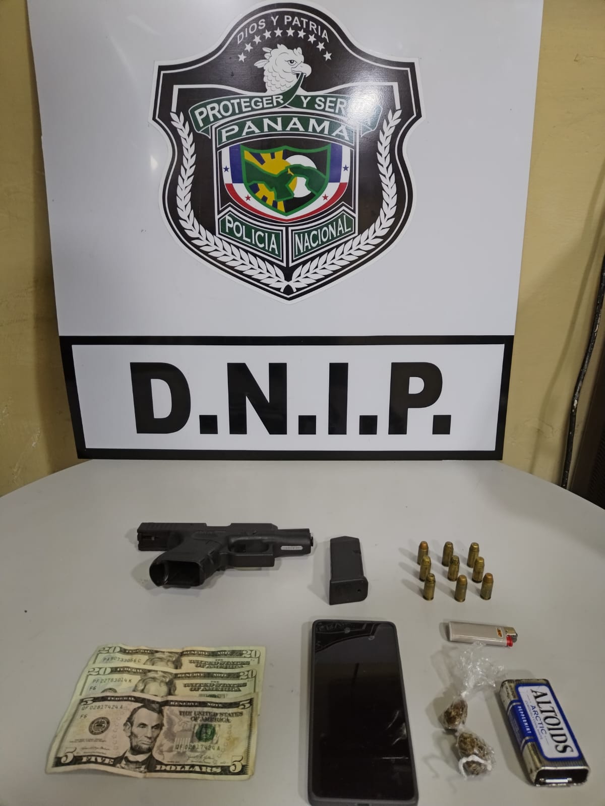 Un arma de fuego tipo pistola, con 9 municiones, su proveedor y, sin el permiso correspondiente fue incautada durante la Operación Orden, mediante diligencia de allanamiento y registro, en el Corregimiento de Río Abajo, cuya misión es sacar de circulación a los transgresores de la Ley por delitos vigentes, armas de fuego y sustancias ilícitas. En esta operación un ciudadano de 24 años fue aprehendido por mantener en su poder un arma de fuego y presunta sustancia ilícita, dinero en efectivo y equipo tecnológico, entre otros indicios confiscados. Junto a los indicios fue puesto a órdenes de las autoridades judiciales correspondientes. |