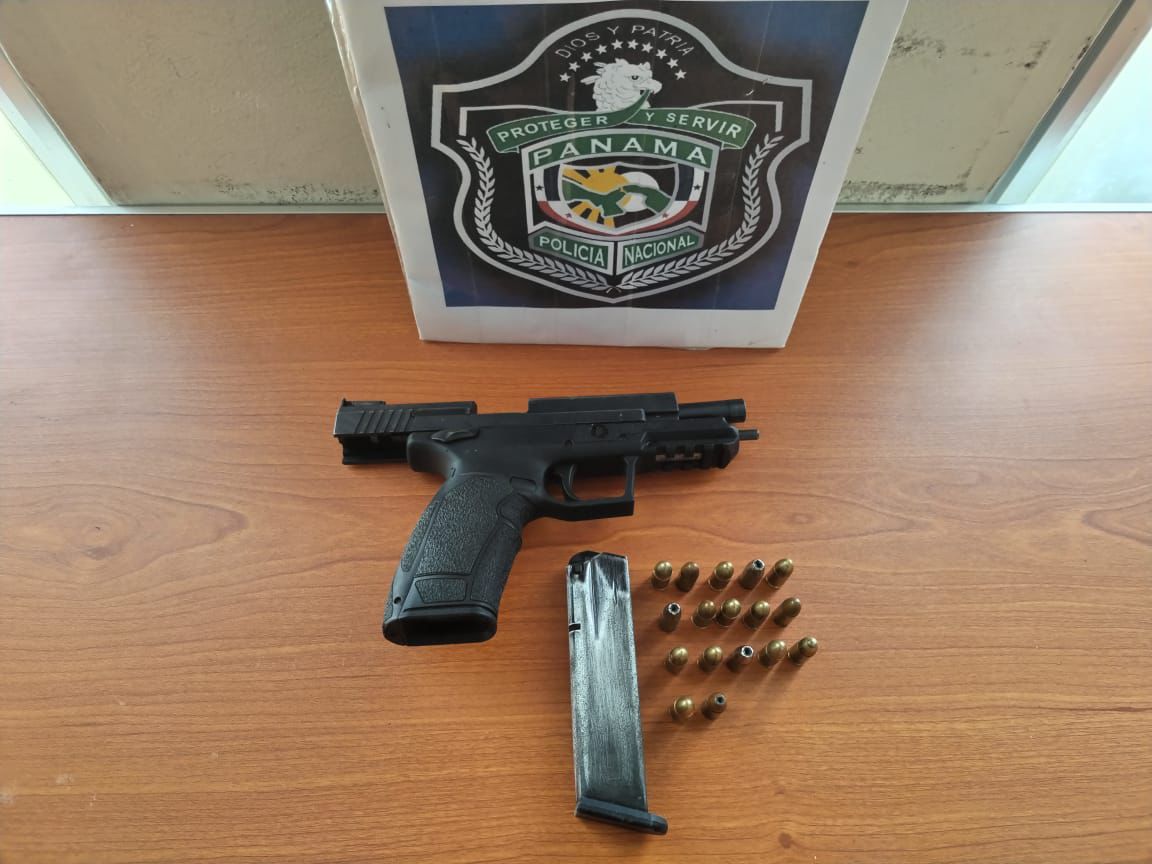 Unidades de la Policía Nacional capturan a un ciudadano quien portaba un arma de fuego tipo pistola con municiones y sin su respectivo permiso, dijo el Mayor Julio Pérez, Ejecutivo de la Unidad Preventiva Comunitaria en la provincia de Colón. La acción policial se produjo en el sector Los Precaristas en Altos de Los Lagos, cuando el sospechoso fue sorprendido por las unidades de Inteligencia Policial quienes al revisarlo, le encontraron el arma en su poder. El arma y el sospechoso fueron puestos a órdenes de las autoridades judiciales correspondientes. |