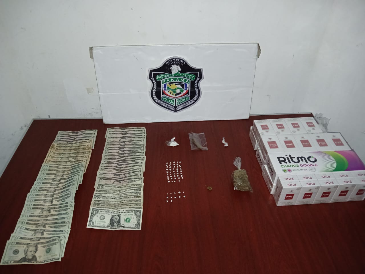 En la última acción policial se ubicó en una residencia localizada en el sector de Loma Colorada, distrito de David, cuatro bolsitas transparentes con presuntas sustancias ilícitas hierba seca, crack y un polvo de color blanco, así como también un cigarrillo de fabricación casera y B/. 561.00 en efectivo.