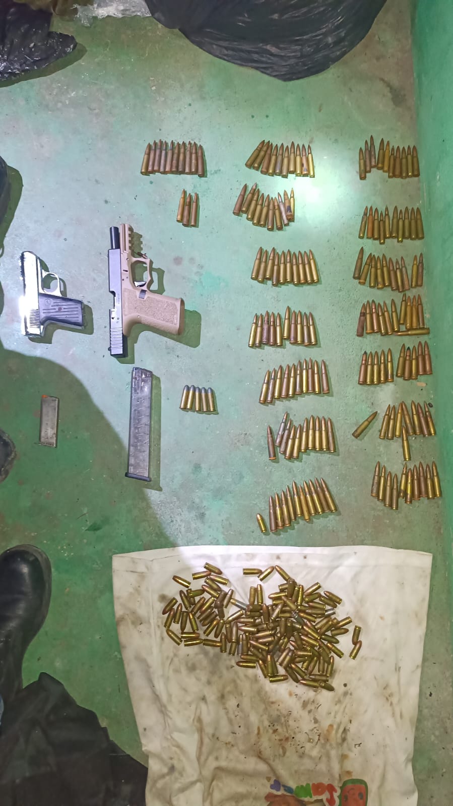 De igual forma, se desarrollan otras diligencias de allanamientos simultáneas en el sector 7 de Belén, donde se incautan 4 armas de fuego gran cantidad de municiones entre estas de AK-47 y 9 milímetros, además de cierta cantidad de presuntas sustancias Ilícitas.