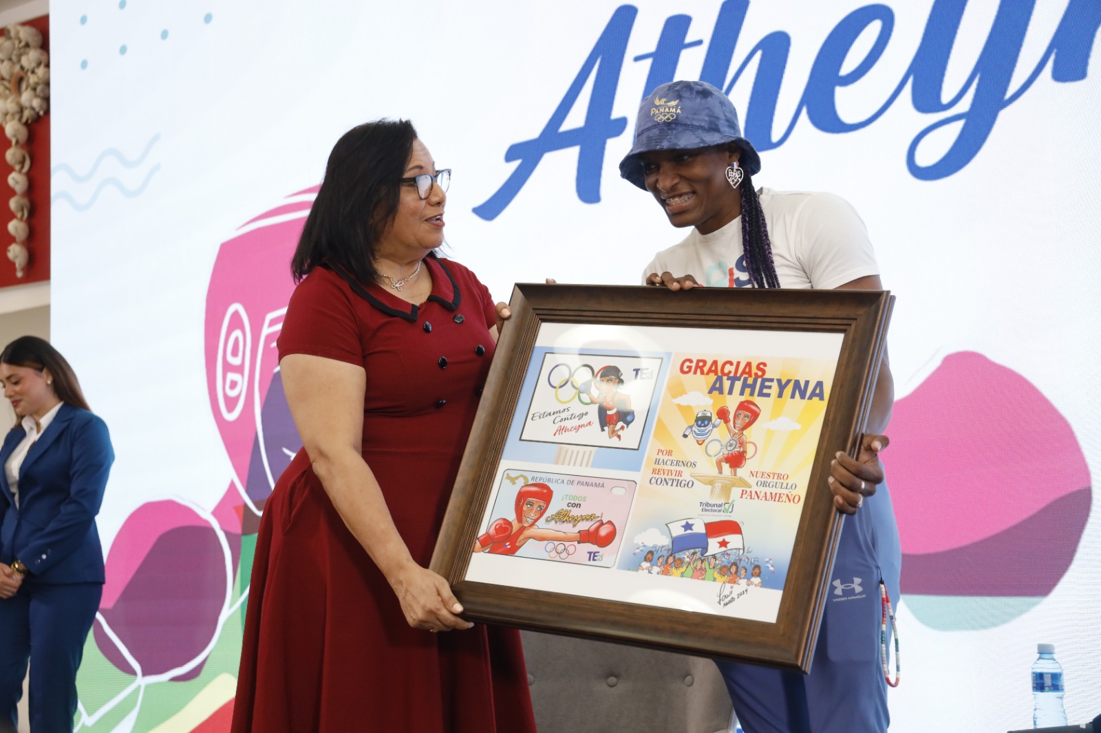 La Sargento Primero y medallista olímpica en la disciplina de Boxeo, Atheyna Bylon, es homenajeada durante un evento organizado por el Tribunal Electoral, en el marco de la Semana de la Democracia.