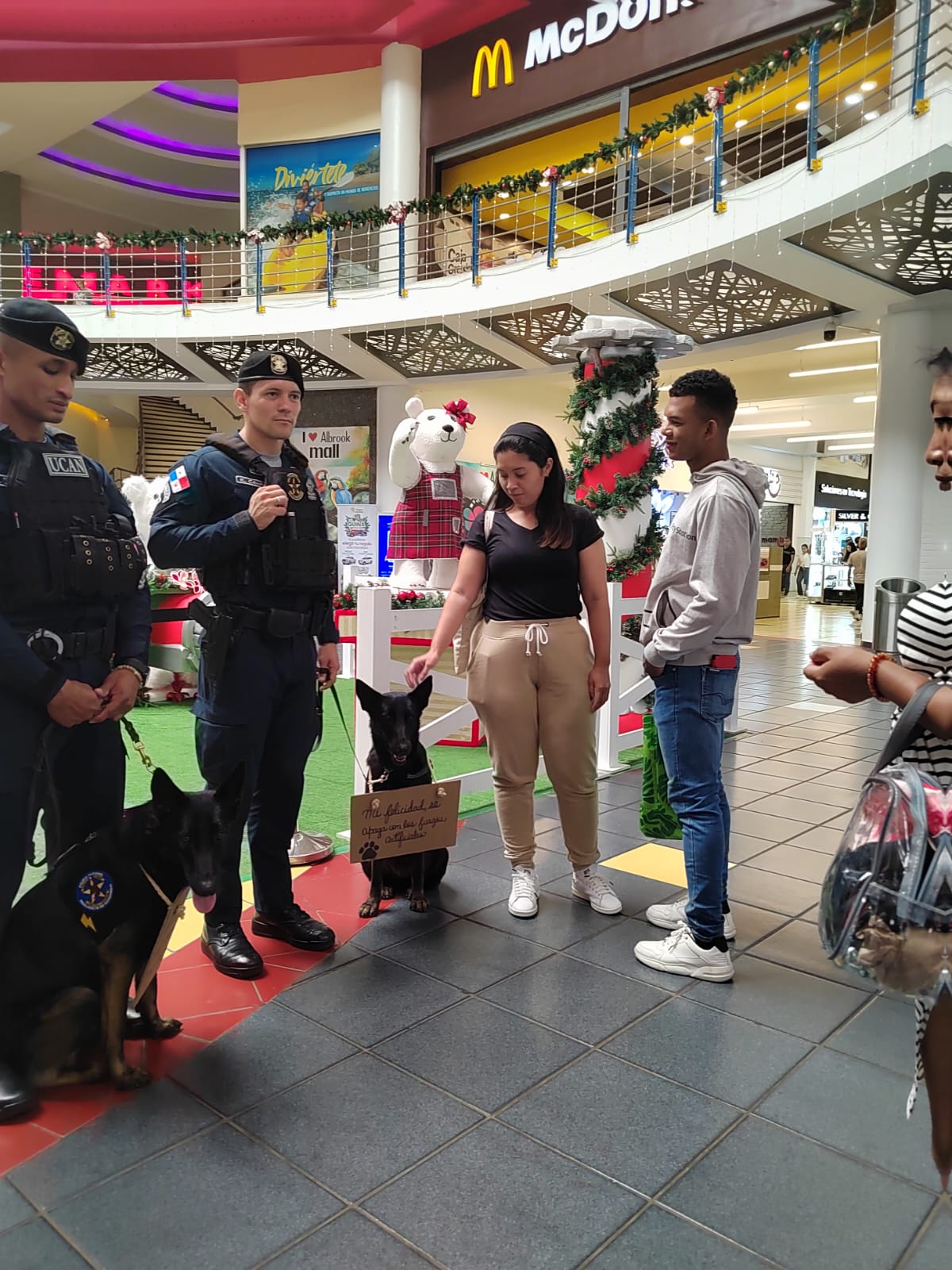 POLICÍA REALIZA CAMPAÑA DE SENSIBILIZACIÓN SOBRE EL IMPACTO DE LA PIROTECNIA EN LAS MASCOTAS EN EL CENTRO COMERCIAL ALBROOK