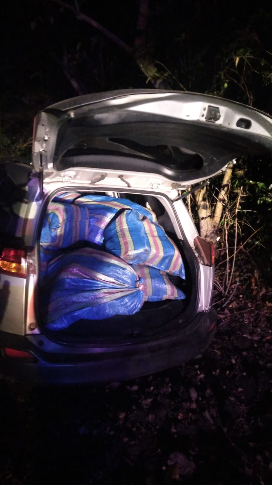 La Policía Nacional, en conjunto con el Ministerio Público, da con el hallazgo de 207 paquetes de presunta sustancia ilícita dentro de varios sacos en un vehículo abandonado en el sector de Santa Cruz, distrito de Chame, provincia de Panamá Oeste. En esta acción desarrollada a través de diligencia de allanamiento y registro también, se halló 18 bolsas plásticas transparentes contentivas de materia vegetal que se presume sea marihuana. El vehículo donde se encontró la presunta sustancia ilícita mantiene una denuncia de Hurto en el sector de Pacora. La Institución Policial continua con los operativos para dar con los responsables de este hecho delictivo y llevarlos ante las autoridades competentes. |