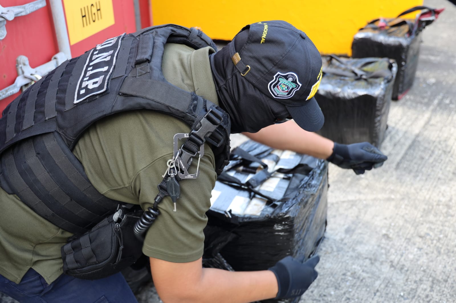 Mediante diligencia de allanamiento y registro en un puerto del Pacífico, la Policía Nacional junto al Ministerio Público, incautó 504 paquetes con presunta droga, que estaban en 18 maletines, dentro de un contenedor.