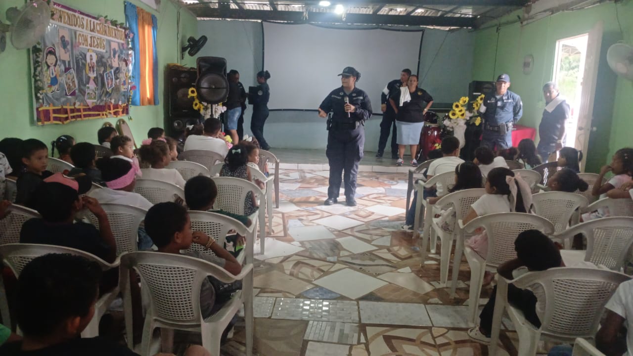 Un total de 50 niños y niñas del corregimiento de Burunga, en el distrito de Arraiján, participaron de diferentes actividades desarrolladas por las unidades del Servicio Policial de Niñez y Adolescencia, en la Fundación Centro Cristiano Jesús es mi Fortaleza. La Policía Nacional reafirma el compromiso del Estado panameño con la salvaguarda de los derechos fundamentales de los más jóvenes y la prevención de la delincuencia juvenil. |
