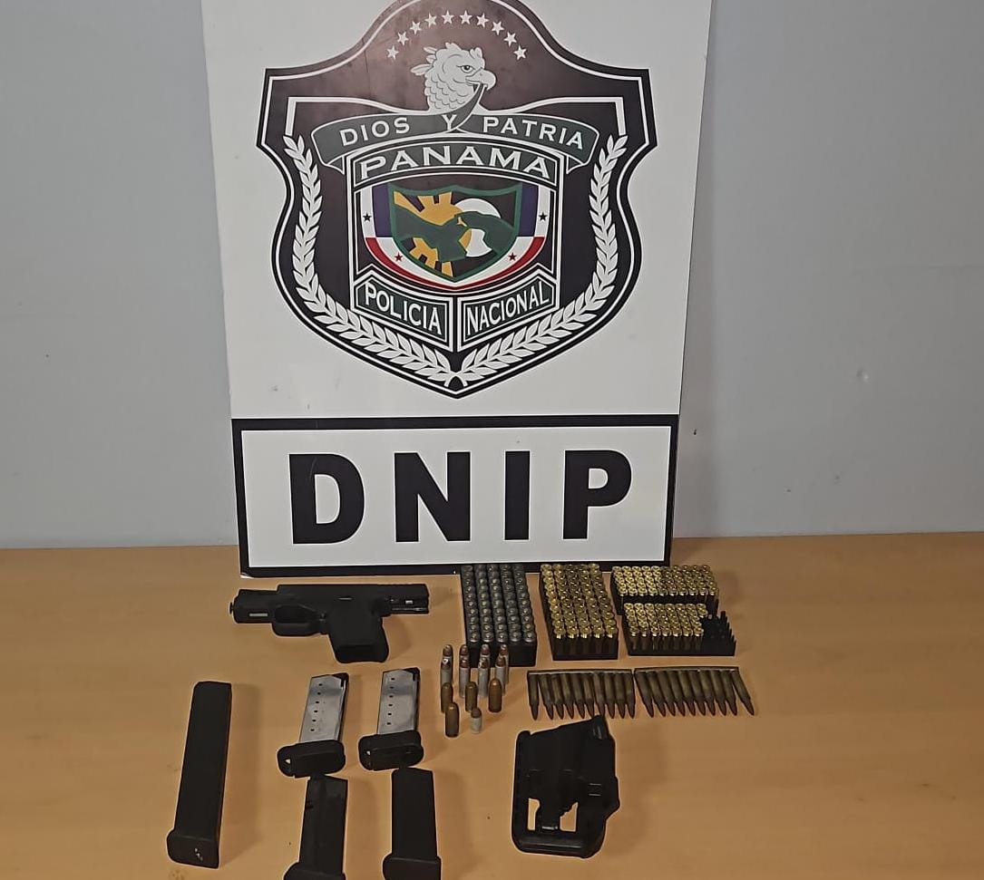 La Policía Nacional junto al Ministerio Público, mediante diligencia de allanamiento y registro logra la aprehensión de un ciudadano de 27 años, quien mantenía en su poder un arma de fuego, proveedores y municiones en el distrito de San Miguelito.