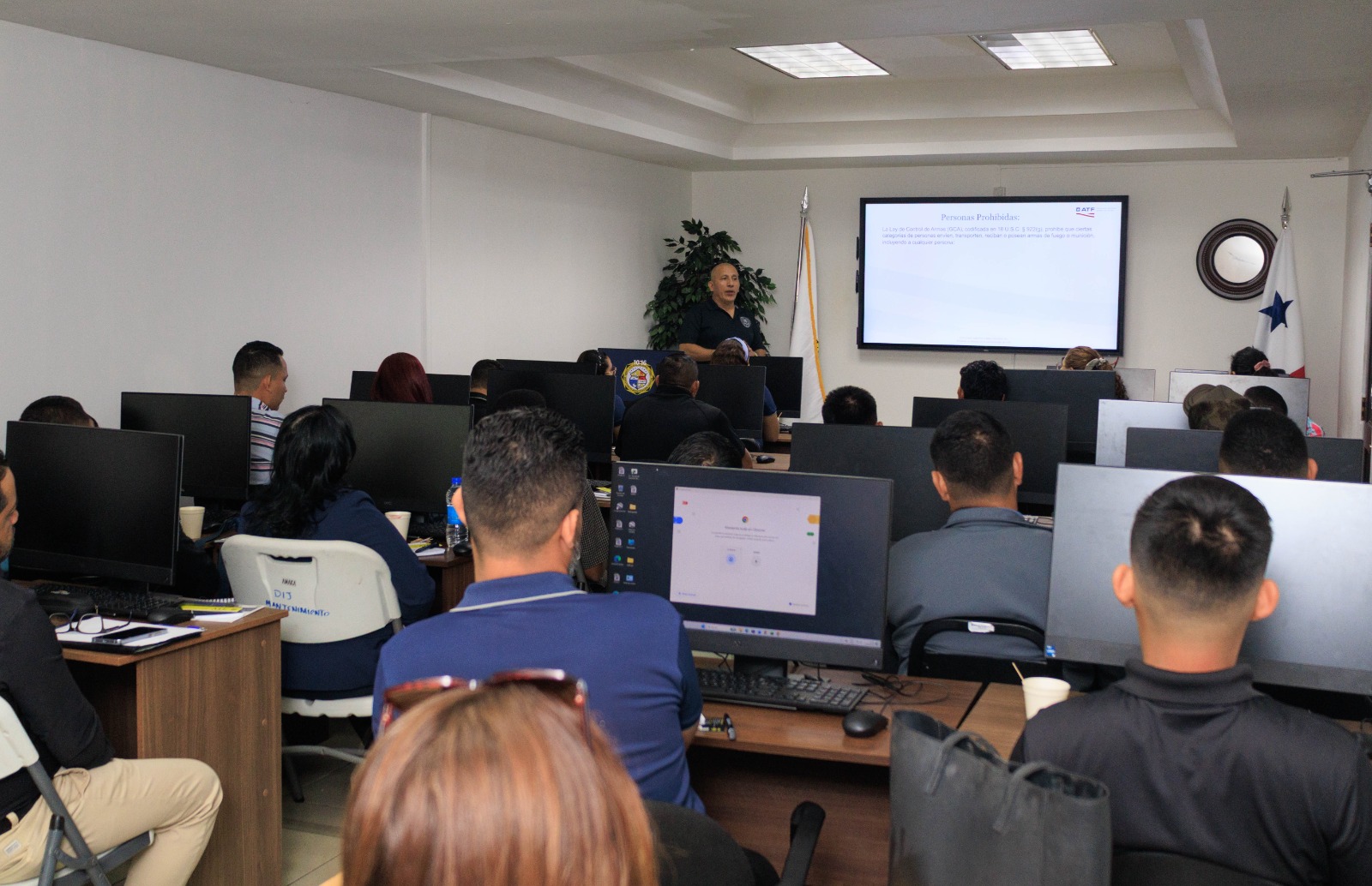 En la sede de la Dirección de Investigación Judicial se desarrolla una jornada de capacitación dirigida a unidades policiales, funcionarios de criminalística y fiscales del Ministerio Público, impartida por personal de la Oficina Regional de Alcohol, Tabaco, Armas de Fuego y Explosivos (ATF). Durante la capacitación, los participantes abordan temas fundamentales para el fortalecimiento de las investigaciones relacionadas con delitos que involucran armas de fuego. Entre los contenidos desarrollados se destacan la identificación de armas de fuego, que incluye el reconocimiento de distintos tipos de armas, así como la identificación de marcas y números de serie. Asimismo, se instruye a los participantes en el uso del sistema E-Trace, herramienta que permite verificar información sobre la compra y el trayecto de armas de fuego, contribuyendo al rastreo de armamento utilizado en actividades ilícitas. Esta capacitación tiene una duración de dos días y tiene como objetivo fortalecer los conocimientos y habilidades de los funcionarios participantes, contribuyendo a mejorar las capacidades institucionales en la lucha contra el tráfico ilícito de armas y al fortalecimiento de la seguridad pública en el país. |