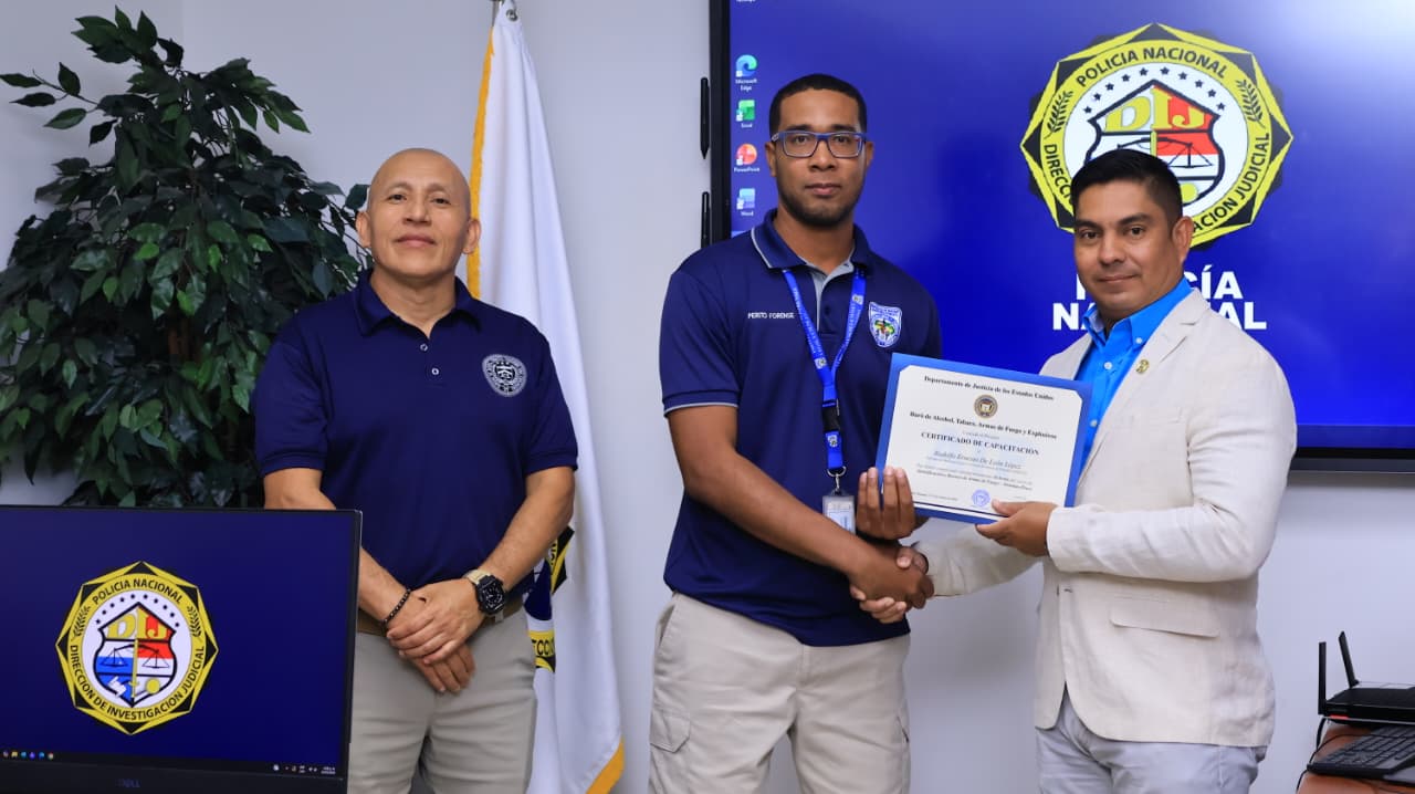 Culmina con éxito la jornada de capacitación dirigida a unidades policiales, funcionarios de criminalística y del Ministerio Público, sobre el tráfico de armas de fuego, impartido por personal de la Oficina Regional de Alcohol, Tabaco, Armas de Fuego y Explosivos (ATF). Con la finalización de esta capacitación, se refuerzan las capacidades técnicas y operativas de las instituciones participantes, contribuyendo al fortalecimiento de las investigaciones y a la lucha contra el tráfico ilícito de armas en beneficio de la seguridad pública del país. |