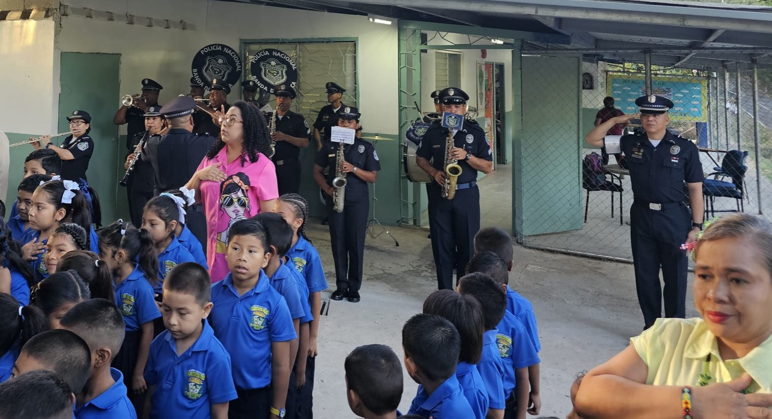 Con honor, disciplina y amor por la patria, las unidades de la Policía Nacional participaron en la izada del pabellón nacional en la Escuela Marcia de Cañellas, en Pedregal. Durante la ceremonia, la banda de música entonó el Himno Nacional, promoviendo la formación de valores cívicos y el respeto por los símbolos patrios entre los estudiantes y la comunidad educativa. Esta actividad refuerza el compromiso de la Policía Nacional con la educación cívica y la cercanía con la ciudadanía, integrando la seguridad con la promoción de la cultura y el patriotismo. |