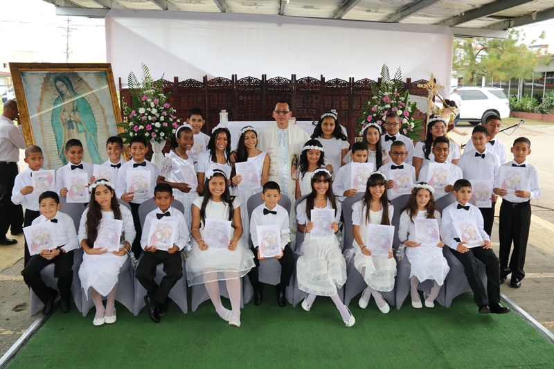 HIJOS DE UNIFORMADOS RECIBEN EL SACRAMENTO DE LA PRIMERA COMUNIÓN Y BAUTISMO