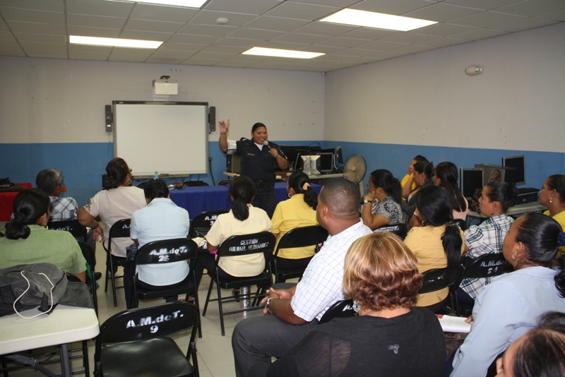 Alrededor de 100 educadores de la Escuela Angelines Mayline de Tirones en la provincia de Coclé, recibieron una charla de orientación en el tema relacionado a "Problemas de conductas en el aula de clases", impartida por unidades de Niñez y Adolescencia de la 2da Zona Policial. El objetivo primordial de esta jornada es proporcionar información básica a los docentes de la implementación de los distintos programas que imparte la Policía Nacional para el desarrollo humano como lo son DARE, JOCODE, GREAT y otros más. En este sentido, el Teniente Ismael González, dijo que los programas brindan al estudiante planes de estudios que tienen como finalidad la intención de ser una inmunización contra la delincuencia, violencia juvenil, droga, alcohol, para los niños, niñas y adolescentes de nuestras escuelas que están expuestos a las pandillas y conductas delictivas. "En materia de prevención comprometiendo a todos los actores en la definición de estrategias de trabajo que apoyen y faciliten una mejor convivencia", señalo González. Durante esta jornada los participantes interactuaron con los miembros de la Policía Nacional dando a conocer sus inquietudes y exponiendo algunos casos . El maestro José González agradeció a la policía Nacional, principalmente a la comisionada Ibeth González, por su apoyo en la implementación de los programas de desarrollo humano aquí en la escuela Angelíne Mayline de Tirones, esperando obtener los mejores resultados, en la formación de los niños y el bien de la comunidad de Río Hato", manifestó el profesor González. |