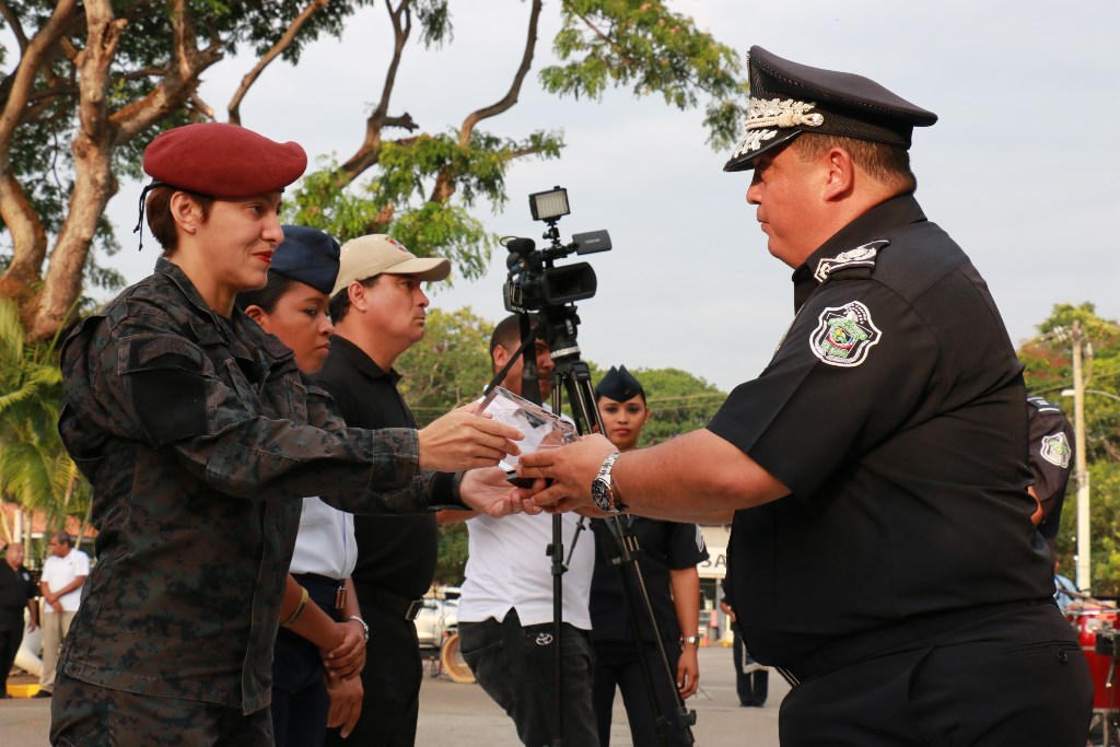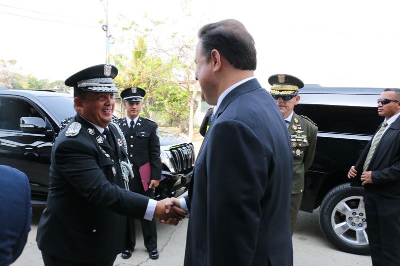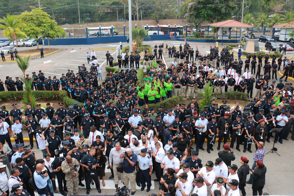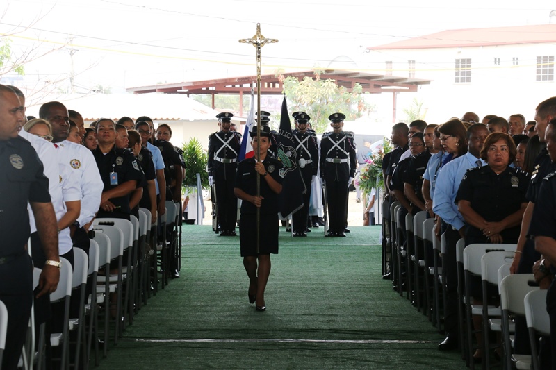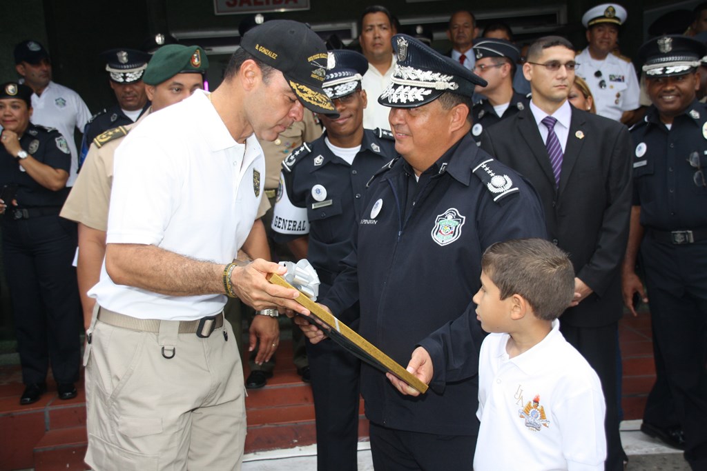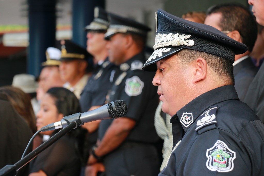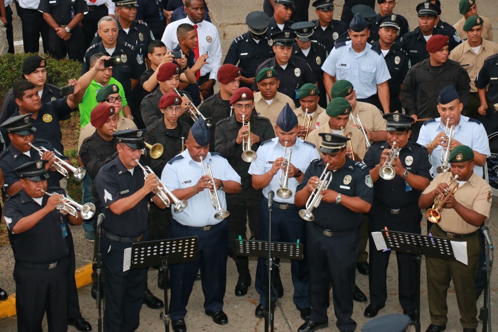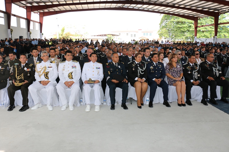 Con un despliegue de fuegos artificiales y dianas, los más de 18 mil hombres y mujeres que conforman la Policía Nacional (PN) arrancaron la conmemoraron el sexagésimo aniversario del "Día del Policía". La alegría y el entusiasmo en cada una de las unidades que se dieron cita en la sede de la PN de Ancón, reflejaba la satisfacción de cumplir día a día la labor de Proteger y Servir a la ciudadanía. El momento fue oportuno para cantar el cumpleaños y llevar a cabo el acto cívico, donde se hizo entrega de placas de reconocimiento a varias unidades, entre estas, a miembros del Servicio de Protección Institucional (SPI) y el Servicio Nacional de Fronteras (SENAFRONT). De la misma forma, el Director del Servicio Nacional Aeronaval (SENAN), Belsio González otorgó un reconocimiento por esta fecha especial al Director General de la PN, Omar Ariel Pinzón Marín. Además felicitó a todas las unidades en su día por su labor de sacrificio y valor. Entre las figuras que asistieron a estas actividades se encontraba la Procuradora General de la Nación Kenia Porcell, así como varios agregados militares, policiales y miembros del directorio general. Seguidamente, bajo las palabras del Monseñor Pedro Hernández, Obispo encargado de la Fuerza Pública de Panamá, aprovechó para resaltar el esfuerzo de los uniformados. “Un estamento de seguridad siempre necesita estar bajo la presencia de Dios”, aseguró el Monseñor. La ceremonia religiosa se dio con la participación del Excelentísimo señor Presidente de la República, Juan Carlos Varela Rodríguez. Durante el acto el gobernante panameño, felicitó a toda la Policía Nacional y al resto de los estamentos de seguridad por su ardua labor en pro de la seguridad de todos los que habitamos esta nación. El Mandatario también realizó un importante reconocimiento al sargento segundo Jairo Torres, a quien obsequió un vehículo para facilitar el traslado a sus citas médicas, debido a que resultará lesionado durante una acción policial. También se realizaron entrega de Biblias y cuadros conmemorativos como premios a varias unidades. El Ministro de Seguridad Rodolfo Aguilera participó de igual forma de la ceremonia reliogiosa. El momento fue oportuno para que una vez más los hombres y mujeres que integran esta loable institución de seguridad se desprendieran un poquito de su labor de brindar seguridad, para entregar canastillas en el Hospital Santo Tomás, Hospital del Niño y el de Especialidades Pediátrica. Como parte de la celebración, se realizó una maratón de aeróbicos donde participaron diversas categorías integradas por miembros de la PN, familiares e invitados especiales, donde continúo la alegría de los uniformados en su día. |