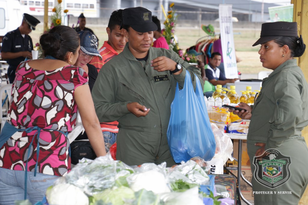 Uniformados y miembros no juramentados de la Policía Nacional adquirieron productos alimenticios y otros artículos, a precios bajos y de excelente calidad que se ofrecieron en la Feria Diversificada, como parte de las actividades en el marco de la celebración de los 78 años del Día del Policía. Esta feria que se organizó en la sede de Ancón, contó con la presencia de las unidades de diferentes dependencias de la Policía Nacional; incluso algunos acompañados por sus familias llevaron a sus casas alimentos de primera necesidad como arroz, aceite, carnes, pollo, embutidos, huevos y vegetales frescos. Varios asistentes aprovecharon y se acercaron a los pabellones de las empresas e instituciones participantes como la Caja de Ahorros para tramitar u obtener información sobre préstamos financieros, hipotecarios, compras de casas, autos; otros se mostraron interesados en la compra de libros, artesanías, artículos para niños, mascotas, entre otros servicios y productos que ofrecían las empresas participantes. El Director General de la Policía Nacional, Omar Ariel Pinzón Marín realizó un recorrido en algunos de los locales de esta feria y compartió con los policías que se dieron cita a esta actividad. Mientras que la Banda de Música imprimió las notas musicales que alegraron el evento. Por su parte, la subcomisionada y jefa de la Dirección de Bienestar Policial y Familiar, Elida Ortega, explicó que estas actividades forman parte de los programas que lleva adelante la institución, velando por los beneficios de sus miembros; mismas que serán realizadas de manera constante. La feria también contó con la visita de los chicos y chicas de Calle 7, programa transmitido en Telemetro, quienes compitieron diferentes pruebas físicas junto los cadetes de la Escuela de Oficiales de la Policía Nacional. |
