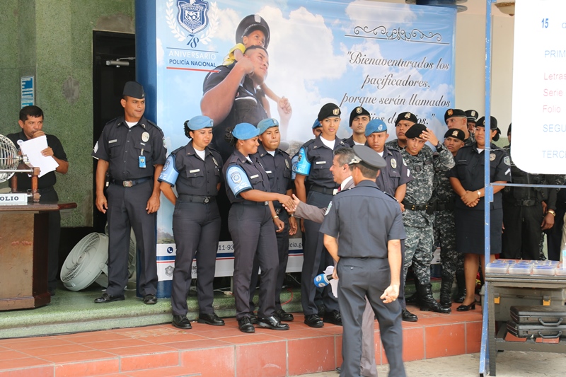 La Policía Nacional continúa con su programa de actividades, en celebración de los 78 años del Día del Policía. En esta ocasión, en la sede principal de la Policía Nacional ubicada en Ancón, se realizó el sorteo correspondiente a miércoles, de la Lotería Nacional de Beneficencia, donde 4 niños uniformados, hijos de unidades policiales fueron los encargados de sacar las balotas. En este sorteo estuvo presente el Director General de la Policía Nacional Omar Ariel Pinzón Marín, Miembros del Directorio de la Institución, unidades policiales, el Director de la Lotería Nacional de Beneficencia Efraín Medina Núñez, medios de comunicación e invitados espaciales estuvieron presentes en este sorteo. En dicha actividad también se desarrollaron presentaciones artísticas, como la Orquesta musical y conjunto típico de la Policía Nacional. Durante el transcurso de la semana se estarán desarrollando una serie de actividades culturales y deportivas para celebrar el Día del Policía. |